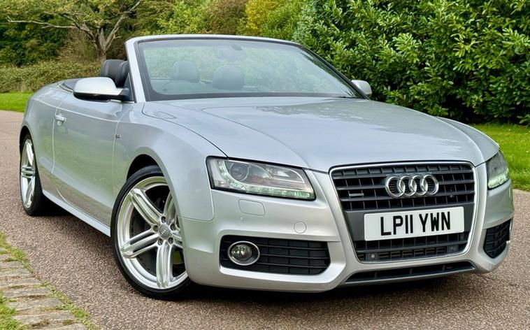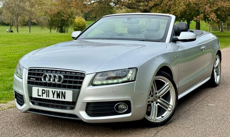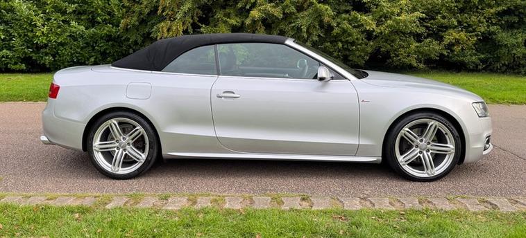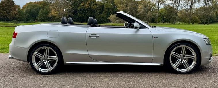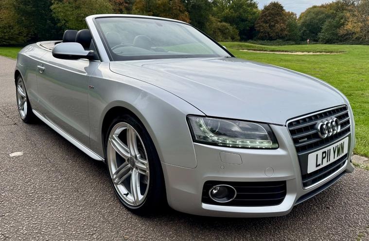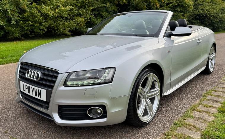 A nice example of a Audi A5 Convertible Finished in silver. To the interior is black heated leather. Very high spec car. Car starts and drives fine. Roof works Correct. Car recently taken in p/x to clear. Due to age, no warranty implied or given. In stock.