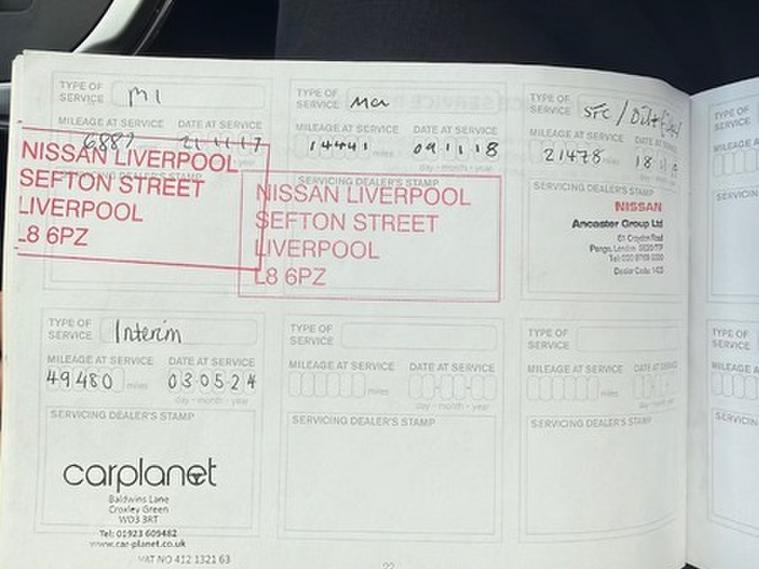 This car comes with 5 seats, Grey, 3 owners, 12V Socket - Front, 17in Alloy Wheels - Urban, 2 Speed Wiper with Variable Intermittent, 3 Adjustable Rear Head Restraints, 60-40 Split Rear Folding Seats, AUX Socket for MP3 Player, Airbag - Driver, Airbag - Front Passenger, Airbags - Curtain, Airbags - Side, Armrest - Coloured Stitching to Matching Centre Console, Automatic Climate Control with Pollen Filter, Automatic Lights and Wipers, Black Headliner, Body Coloured Handles, Body-Coloured Door Mirrors with LED Indicators, Boot Capacity with Flexi-Floor Board, Chrome Interior Door Handles, Colour Reversing Camera, Cruise Control with Speed Limiter, DAB and Internet Radio with 6 Speakers, Drive Computer with Temperature Gauge, ESP ABS EBD and Brake Assist, Electric Folding and Heated Door Mirrors, Engine Immobiliser, Front Armrest, Front Cupholders x2, Front Door Pockets with Drinks Bottle Holders, Front Fog Lights, Front Map Reading Lights, Front Seat Belt Height Adjustment, Front Seat Belts with Load Limiter and Pretensioners, Front and Rear Electric Windows, Gear Shift Indicator, Glovebox, Height Adjustable Driver Seat, ISOFIX Child Seat Anchoring Points, Intelligent Key with Start Push Button, LED Signature Daytime Running Lights, Leather Steering Wheel and Gear Knob, Nissan Dynamic Control System, NissanConnect, Passenger Airbag Cut-Off Switch, Power Assisted Steering - Speed Sensitive, Puncture Repair Kit, Rear Door Child Locks, Rear Privacy Glass, Rear Tonneau Cover Integrated into Tailgate, Rear Wiper with Intermittent, Safety Pack, Seats - Heated Front, Steering Wheel Mounted Audio Controls, TPMS - Tyre Pressure Monitoring System, Telephone - Bluetooth Integration, Tilt Adjustable Steering Wheel, Traction Control, USB Port,