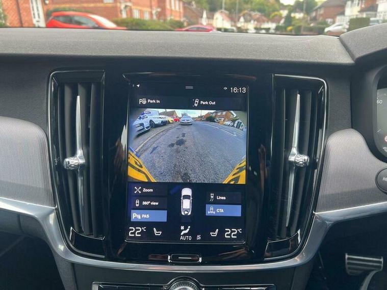 This 2017 Volvo S90 D4 R Design presents an exceptional ownership proposition with its remarkably low mileage of just 49, 000 miles, a testament to its careful stewardship by only two previous owners. This Euro 6 compliant, 2.0 litre diesel saloon offers a refined driving experience, complemented by the sporty R Design trim. Inside, you'll find luxurious Nappa Soft Leather Perforated Contour Sports upholstery in Charcoal, and the convenience of a power driver's seat with memory function. Parking is made effortless with a rear park assist camera and Park Assist Pilot, which includes front and rear sensors. Safety is paramount, with the Blind Spot Information System (BLIS) featuring Cross Traffic Alert and Rear Collision Mitigation, alongside autodimming exterior mirrors.