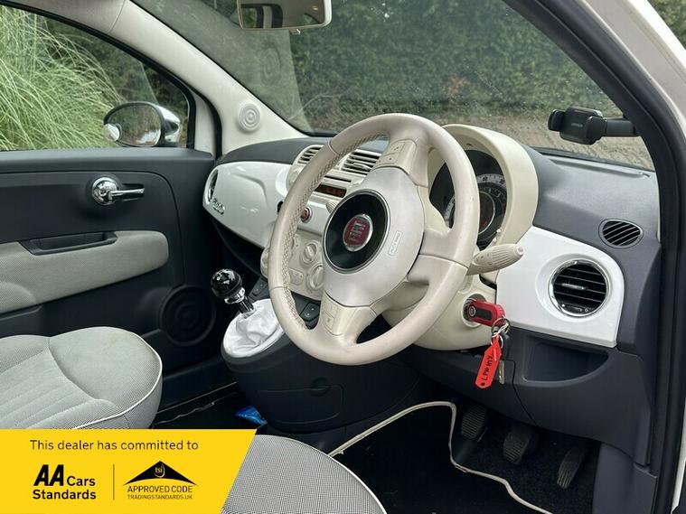 Renowned for its iconic design, compact size, and excellent fuel economy, the Fiat 500 makes an ideal city car or first car. The light interior gives the cabin a bright, modern feel, complemented by the sporty exterior styling.