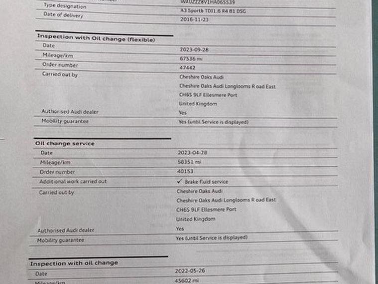 2016 Audi A3 1.6 TDI S line Sportback 5dr Diesel S Tronic Euro 6 (s/s) (110 ps) Auto +2keys +Navigation +Low Miles +Ulez