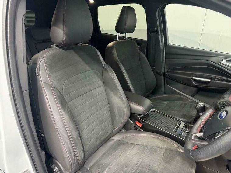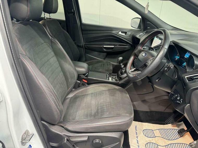 Finished in a sleek White exterior, this Ford Kuga stands out on the road with its striking presence. The Frozen White colour adds a touch of sophistication to its sporty ST-Line Edition design.