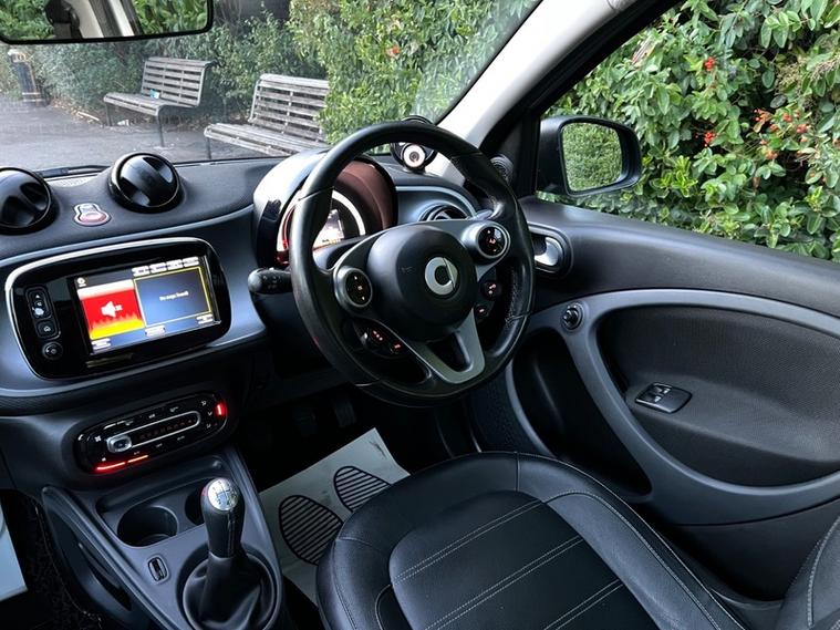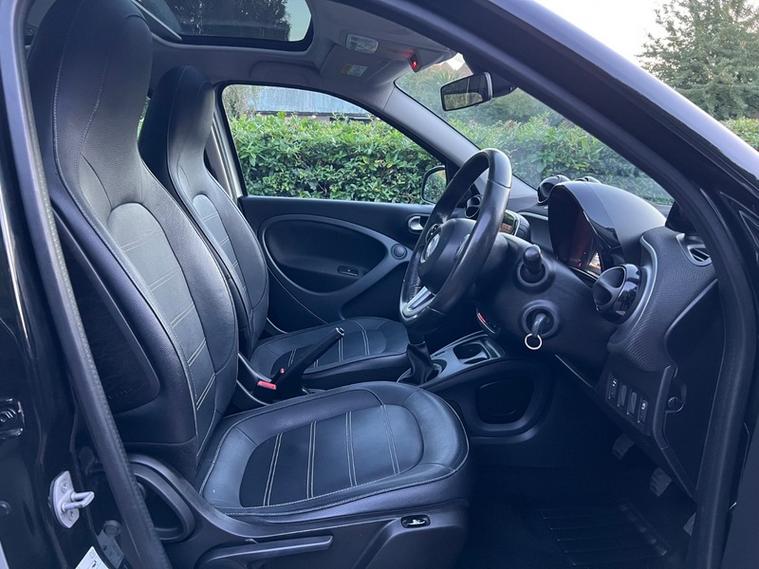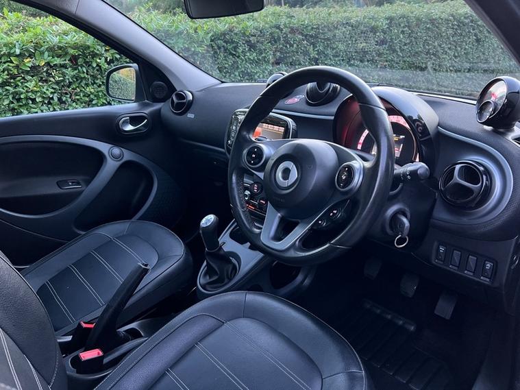 This 2017 Smart forfour Prime presents a clear vehicle history, offering peace of mind for its next owner. This stylish city car is equipped with a 1.0 litre petrol engine and meets Euro 6 emissions standards. Inside, you'll find a host of premium features designed for comfort and convenience, including automatic climate control, heated seats for the driver and front passenger, and a panoramic roof with sun protection. The Premium Equipment Line also includes Bluetooth connectivity and rear parking assistance sensors, making every journey more enjoyable., , The Smart forfour Prime stands out with its impressive fuel economy, achieving a remarkable 67 miles per gallon, which indicates it is more economical than many similar vehicles. Furthermore, its low insurance group rating suggests lower running costs, and its low CO2 emissions highlight its environmental consideration. These factors combine to make this Smart forfour a sensible and appealing choice for urban driving and beyond. 1 Former Keepers. Just had a full service. We provide 12 months AA Breakdown cover, so you can buy with confidence. Viewing by appointment only. Please call to arrange viewing. For more information please visit dealer's website Thanks, 6 months warranty, 12 months MOT, Part service history, Clean bodywork, Black Full leather interior - Clean Condition, Tyre condition Excellent, 4 seats, Black, 2 owners, Upgrades - Leather - Black with Grey Stitching, Standard Features - 12 Volt Socket with Cover, 15in Alloy Wheels - 5-Twin-Spoke Painted in Black with a High-Sheen Finish, 85 Degree Wide Opening Rear Doors, ABS - Anti Lock Braking System, Airbag - Kneebag for Driver, Airbags - Driver and Passenger, Airbags - Sidebags for Driver and Front Passenger - Combined Head and Thorax, Automatic Climate Control, Black Front Grille, Brake Assist, Breakdown Kit with Air Compressor and Sealant, Central Locking with Convenience Closing Features, Central Locking with Radio Remote Control - Visual Locking-Verification Signal and Folding Key, Centre Console with Pull-Out Tray and Double Cup Holder, Cool and Audio Package with Automatic Climate Control, Crash Sensor for Activation of Hazard Warning Lights, Crosswind Assist, Cruise Control with Speedtronic Variable Speed Limiter, Dashboard Instruments with Cockpit Clock and Rev Counter, Dashboard and Door Centre Panel - Black Fabric, Dashboard and Door Centre Panel Fabric and Highlights in Contrast Colour, Direct-Steer System with Speed Sensitve Power Assistance and Variable Steering Ratio, Door Mirror Caps in Tridion Colour, Door Mirror with Aspherically Curved Mirror Glass on Driver Side, Drive Lock - Automatic Door Locking when the Vehicle is in Motion, ESP - Electronic Stability Programme, Electric Windows, Gearshift Lever - Trimmed Leather, Grab Handle for Front Passenger, Headlights - H4 Halogen, Headrests at the Rear x 2, Heated Seats for Driver and Front Passenger, Hill Start Assist, ISOFIX Child Seat Attachment Points on Rear Seats, Instrument Cluster with Multi Functional Colour 3.5in Display, Interior Door Handle - Matt Chrome, Interior Lighting, LED Daytime Running Lights, Load-Lashing Eyes in Luggage Compartment, Lockable Glove Compartment, Lockable Service Bonnet, Luggage Compartment Cover, Luggage Compartment Lighting, Onboard Computer, Outside Temperature Display, Painted Door Handles, Panoramic Roof with Sun Protection, Passenger Seat Backrest Foldable Down For Through Loading, Pedestrian Impact Protection Front and Side, Pre-installation for iPad Cradle on Driver and Front Passenger Seat Backrest, Premium Equipment Line, Radiator Trim - Black, Readyspace Seats at Rear with Removable Cargo Box, Rear Spoiler, Rear Windscreen - Heated with Timer Control, Rear Windscreen Wiper with Intermittent Wiper and Automatic Wipe - Wash Function, Seat Belt Reminder for Driver and Passenger, Seat Belts - Three-Point with Seat Belt Tensioners and Belt Force Limiters, Solid Roof in Tridion Colour, Steering Wheel - 3- Spoke Multi-Function - Leather, Storage Compartment in Front Doors, Sunglasses Holder, Third Rear Brake Light, Tridion Safety Cell in Black Solid Paint, Tyre Pressure Monitoring System, Vanity Mirror in Sun Visors with Parking Ticket Holder for Driver and Passenger, White Side Indicators, £3, 495