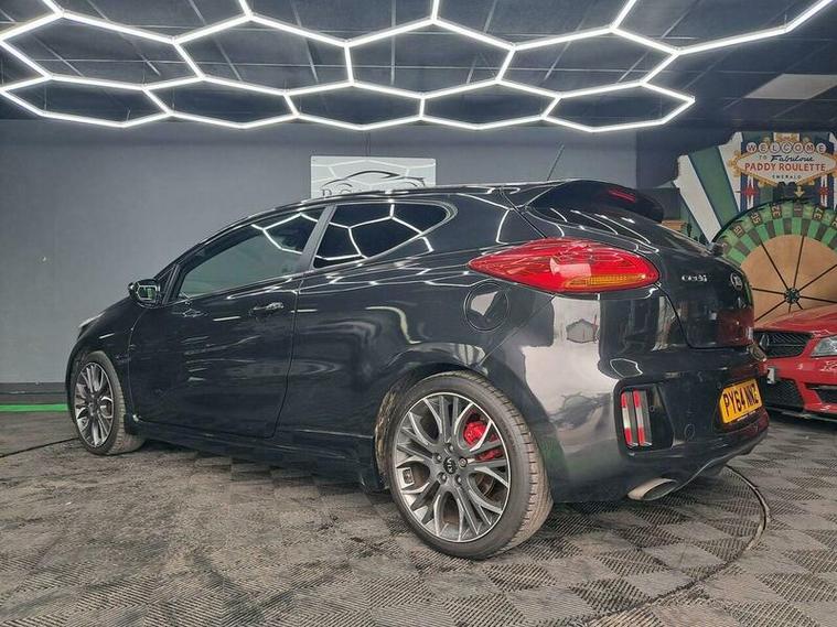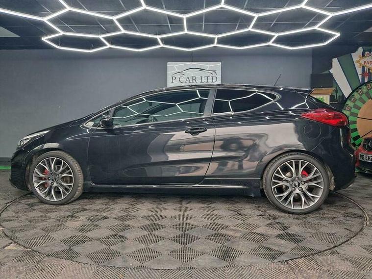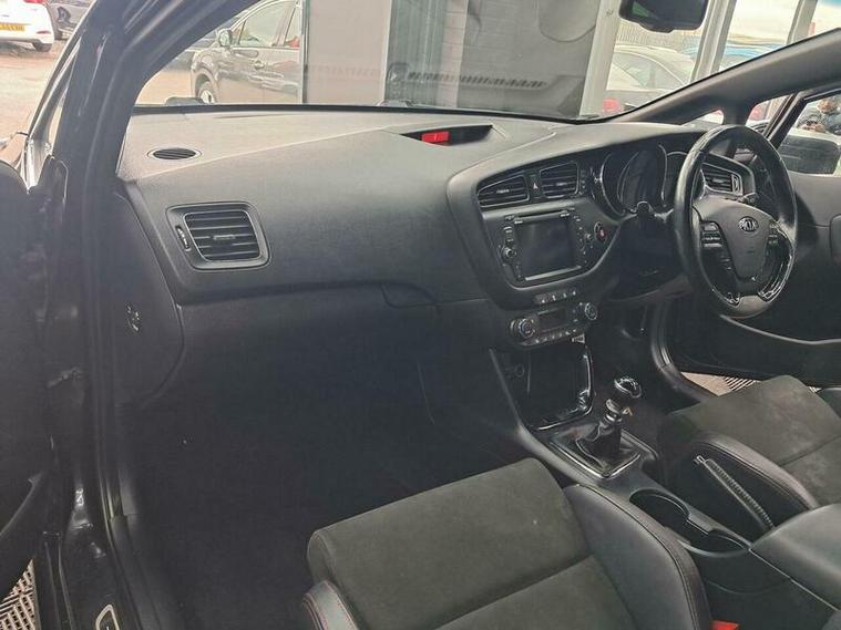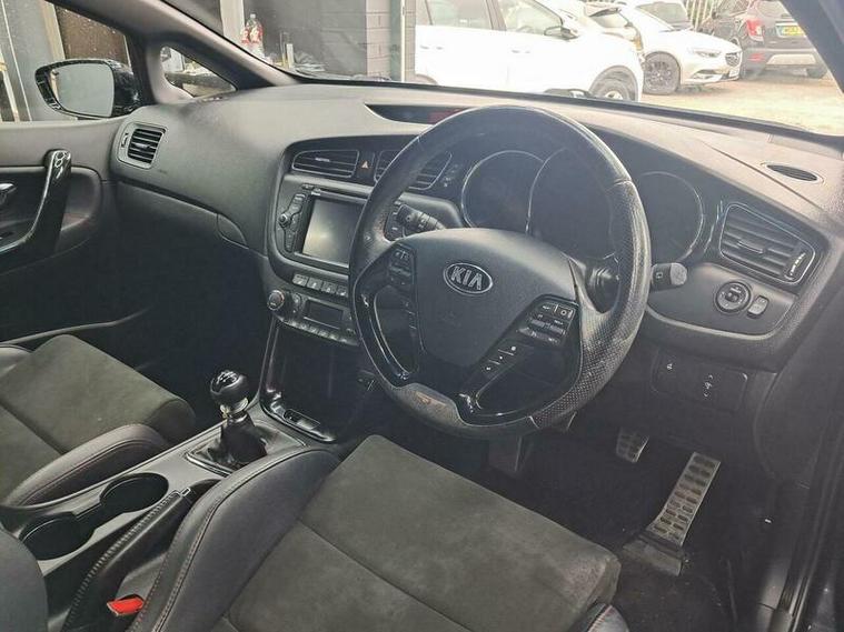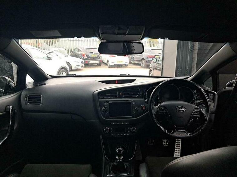 This Kia ProCeed GT Tech is a rare find, having had only two owners from new and boasting a clear vehicle history check. Registered in 2014, this T GDi GT Tech model features a responsive 1.6 litre petrol engine, capable of reaching 0 to 60 miles per hour in just 7.4 seconds. Inside, you'll appreciate the comfort of heated front seats and the convenience of dual automatic air conditioning with an ioniser, ensuring a pleasant cabin environment in all conditions. The smart key entry system allows for effortless access, and you can stay connected on the go with Bluetooth and music streaming. Parking is made simpler with rear parking sensors.