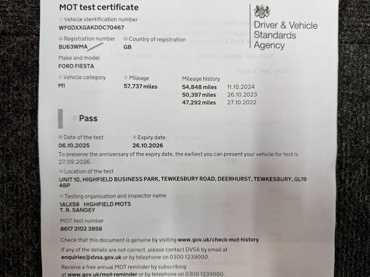 ABSOLUTE CARS have this 5 Door Ford Fiesta 1.25 Zetec Euro 5 in Solid Red with Alloys. An Ideal First Car + Only £35 a Year Tax ! Call in for a test drive, finance arranged & part exchange considered., 3 months warranty, Next MOT due 26/10/2026, Last serviced on 06/10/2025 at 57, 737 miles, Part service history, Grey Cloth interior, 5 seats, Red, 2 owners, Upgrades - Spare Wheel - 14in Steel, Standard Features - 12V Power Socket - Front, 15in Alloy Wheels - 5x2 Spoke, ABS - Anti-lock Braking System, Aesthetic Lighting Package, Air Conditioning - Manual, Airbags - Curtain, Airbags - Driver Side Knee, Airbags - Front Passenger, Airbags - Head and Thorax, Airbags - Passenger Deactivation, Brake Warning Lights - Automatic Flashing of Brake Lights Under Heavy Braking, Bumpers - Front and Rear - Body Colour, Centre Console - with Trinket Tray - Two Cup Holders, Chrome Belt Line Finisher, Courtesy Light - Overhead with Theatre-Style Dimming, Courtesy Lights with Map Reading Lights, Door Handles - Body Colour, Door Mirrors - Electrically Operated and Heated, Drivers Airbag, EBA - Emergency Brake Assist, EBD - Electronic Brakeforce Distribution, ECOmode, EPAS - Electric Power Assisted Steering, ESP - Electronic Stability Programme, Electric Windows - Front with One Touch Lowering Drivers, Emergency Brake Warning - Automatic Hazard Warning Lights, Ford AM-FM CD Audio System, Ford Easy Fuel Capless Refuelling System with Misfuel Inhibitor, Front Fog Lights - Chrome Bezel Rings, Front Lower Grille Insert and Surround - Black, Front Seatback Map Pockets - Driver and Passenger, Front Upper Grille - Chrome Finish Surround, Front Upper Grille Insert - Chrome bars, Gear Knob - Leather, Gearshift Indicator Light, Gearshift Knob - Leather-Trimmed with Chrome Finish Bezel, Glovebox - Illuminated, Handbrake Release Knob - Chrome, Head Restraints - 2-way Adjustment, Head Restraints - Rear 2-Way Adjustment, Headlights - Courtesy Delay, Headlights - Follow Me Home, Headlights - Halogen Projector with Silver Bezel, Headliner - Woven, Heated Front Windscreen, High-Mounted Rear Brake Light, IPS - Intelligent Protection System, Interior Door Lever - Chrome Finish, LED Ambient Courtesy Lighting, Leather-Trimmed Handbrake, Loadspace Compartment Light, Loadspace Floor Carpet, Locking Wheel Nuts, MyKey, Passenger Airbag Deactivation Indicator, Passengers seat manual 2-way adjustment, Pollen Filter, Rake and Reach Steering Adjustable, Rear Courtesy Lights, Rear Seats Back - Carpet, Rear Spoiler - Body Colour, Remote Central Locking, Removable Package Tray, Seats - 60-40 Split Folding Back and Fixed Cushion, Seats - Drivers 4-Way Adjustment, Seats - Front Comfort Style, Seats - ISOFIX Mounting Brackets for Child Seats, Second Remote Ignition Key, Steering Wheel - 3-Spoke - Leather Trimmed with Bezel, Steering Wheel - Multifunction, Stowage Pockets - Driver and Front Passenger Seatbacks, Suspension - Front Stabiliser Bar, Tailgate Handle - Body Colour with Chrome Finisher, Trip Computer, USB and AUX Connection for External Music Devices, AS WE ARE AN AA CARS DEALER THIS VEHICLE COMES WITH 12 MONTHS AA BREAKDOWN COVER.