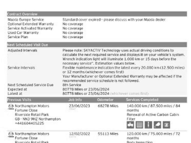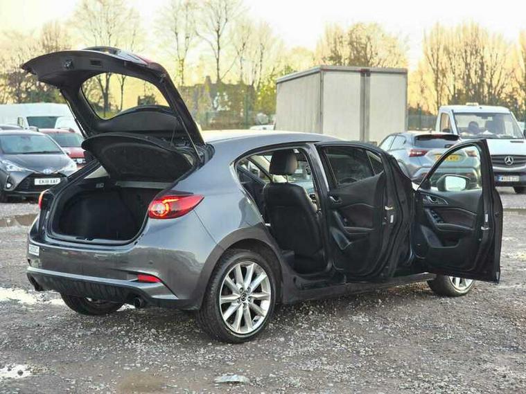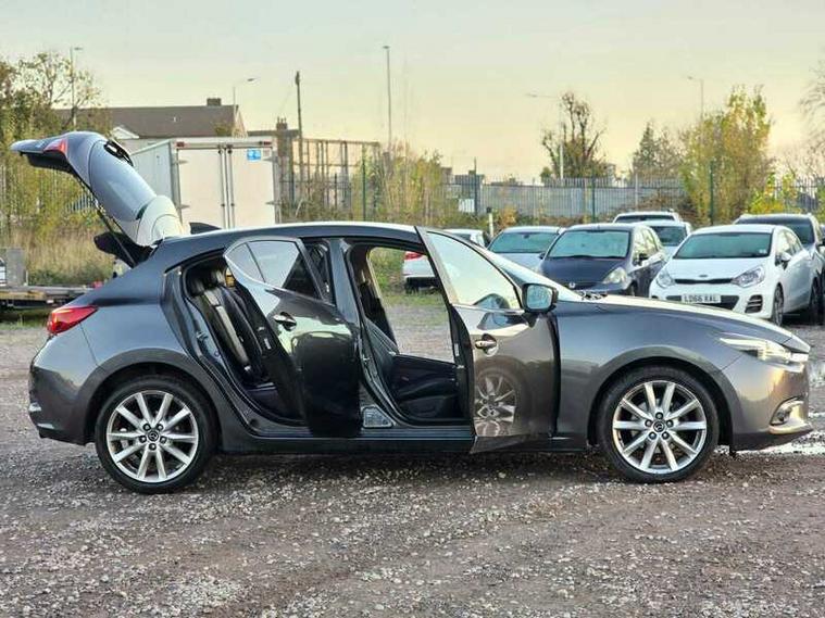 This car comes with 5 seats, Grey, 2 owners, Upgrades - Cloth - Black, Safety Pack, Standard Features - 18in Alloy Wheels, 7in Colour Touch-screen Display, AM-FM-DAB Radio - Single CD Player-MP3 with Premium Bose Centrepoint Surround-sound System with Nine Speakers, Adjustable Speed Limiter, Aha App and Stitcher App Integration, Anti-lock Braking System with Electronic Brake-force Distribution and Emergency Brake Assist, Armrest - Front Centre with Slide Function, Auto Dimming Rear View Mirror, Auxiliary - AUX - and Two USB Input, Cruise Control with Manual Speed Adjustment, Dashboard Panel - Silver, Digital Speedometer, Dome Interior Courtesy Light with Integrated Spotlight, Door Mirrors - Electrically Adjustable - Heated - Auto Power Folding with Integrated Indicator Lights, Driver and Front Passenger Airbags, Dual Chrome Exhaust Tailpipe, Dual-Zone Climate Control Air Conditioning, Dynamic Stability Control with Traction Control System, Electric Power Assisted Steering - EPAS, Electric Windows - Front and Rear with One Touch Auto Up and Down on Drivers Side, Electronic Parking Brake with Auto-Disengage Function, Emergency Stop Signalling System - ESS, Emergency Tyre Repair Kit, Engine Start-Stop Button, Front Fog Lights - LED, Front Passenger Airbag Cut-Off Switch, Front Passenger Seat - Manual Height Adjustment, Front Side Airbags, Front and Rear Curtain Airbags, Glovebox with Light, Grab Handles - Front Passenger and Two Rear with Coat Hooks, Head Restraints - Rear, Headlights - Adaptive Front Lighting System, Headlights - Coming-Leaving Home, Headlights - Dusk-Sensing Lights, Headlights - LED with Auto Headlight Levelling, Heated Front Seats with 3-Stage Settings, Hill Hold Assist, ISOFIX Child Seat Anchorage for Outer Rear Seats, Integrated Bluetooth, LED Signature Daytime Running Lights, LED Signature Rear Lights, Leather-wrapped Gear Knob and Handbrake, Luggage Compartment - Light, Meter Set Display - Colour Active Driving Display - Head-up Display, Multimedia Commander, Parking Sensors - Front and Rear, Privacy Glass - Rear and Rear Side Windows, Rain-Sensing Front Wipers, Rear Seats - Centre Armrest with Two Cupholders, Remote Central Locking with Deadlocking, Reversing Camera, SKYACTIV-Body Engineered Triple H Body Structure to Help Protect Occupants from Impact Forces, Satellite Navigation System, Seatback Pocket - Rear of Front Passenger Seat, Seatbelts - Front 3-point - ELR - x2 with Pre-tensioners and Load-limiters - Height-adjustment, Seatbelts - Rear 3-point - ELR - x3 with Pre-tensioners, Seatbelts - Reminder Screen with Audible Warning, Seats - 60-40 Split Folding Rear, Seats - Drivers Manual Lumbar Adjustment, Seats - Drivers Manual Slide-Recline and Height Adjustment, Self-Supporting Rigid and Torsion-Resistant All-Steel Body with Defined Crush Zones for the Front and Rear Sections - Stable Passenger Safety Cell with Side Impact Reinforcement in the Doors, Shark Fin Antenna, Smart City Brake Support, Smart Keyless Entry, Steering Wheel - Leather Wrapped, Steering Wheel - Mounted Audio and Bluetooth Controls, Steering Wheel - Paddle Shift, Steering Wheel - Telescopic and Tilt Adjust, Storage Spaces - Door Pockets, Storage Spaces - Front Centre Console with Two Cupholders, Storage Spaces - Inside Front Centre Armrest, Sun Visors - Drivers and Front Passengers, Sunglasses Holder, Thatcham Category 1 Alarm and Immobiliser, Trip Computer, Tyre Pressure Monitoring System, USB Audio - iPod Connectivity, Wipers - Front Adjustable Speed with Intermittent, Wipers - Rear Adjustable Speed with Intermittent,