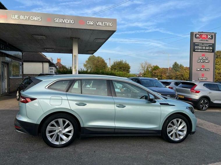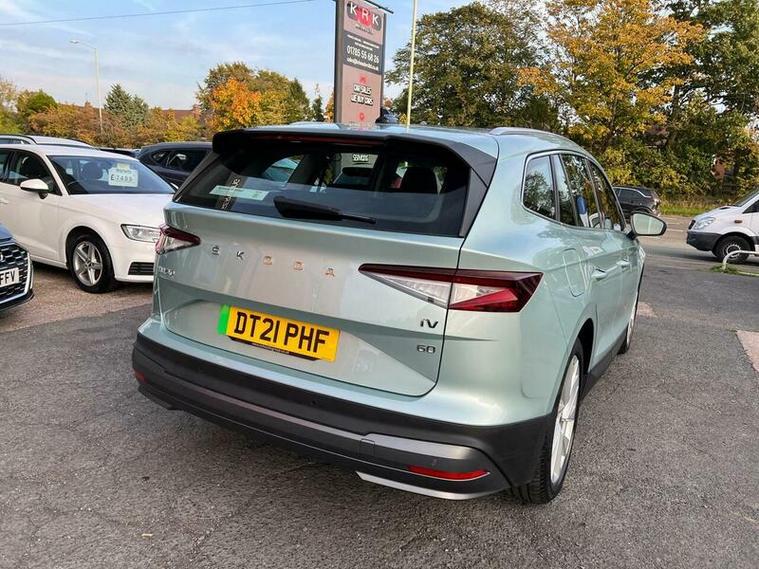 The Skoda Enyaq 60 offers a practical and spacious driving experience, highlighted by its generous boot space, making it ideal for families or those needing ample storage. Its electric powertrain ensures a smooth and quiet ride, while the impressive range and charging capabilities make it a viable and eco-friendly alternative to traditional petrol or diesel cars. The low mileage and single owner provenance further enhance its appeal, suggesting it has been well cared for and is ready for its next chapter.