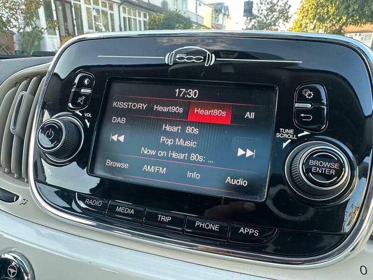Enjoy your journeys with the 5in touchscreen radio, complete with AUX, USB, DAB, and Bluetooth connectivity for all your entertainment and communication needs. The air conditioning ensures a pleasant temperature whatever the weather. This Fiat 500 is also remarkably economical, achieving an impressive 60 mpg, and benefits from a low insurance group and low CO2 emissions, indicating it is more cost effective to run and own compared to many similar vehicles.