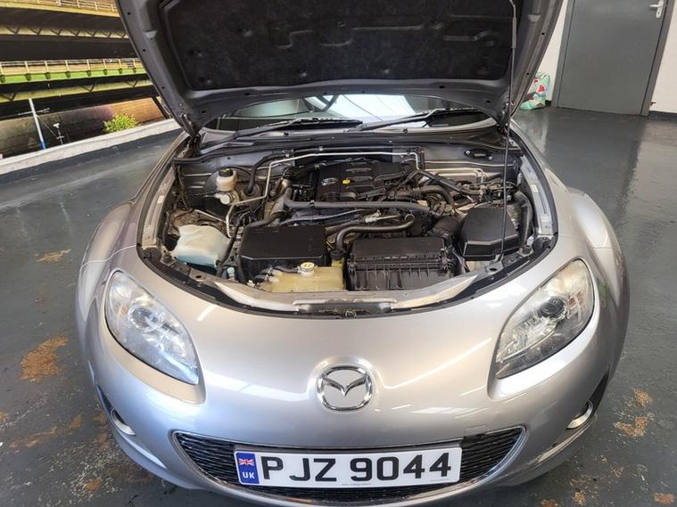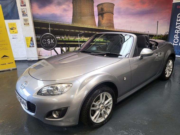 The 2010 Mazda MX-5 Roadster SE is a classic two-seater sports car that delivers pure driving pleasure with its lightweight design, sharp handling and timeless roadster styling. Powered by a 1.8-litre petrol engine producing 124 bhp, paired with a slick 5-speed manual gearbox, it provides an engaging and responsive driving experience. The MX-5 accelerates from 0?62 mph in 9.9 seconds and reaches a top speed of 123 mph. Thanks to its lightweight construction and perfectly balanced rear-wheel-drive chassis, it?s as fun to drive on twisting country roads as it is smooth and comfortable for everyday cruising.The SE trim offers a perfect balance between sportiness and everyday usability. On the outside, it features 16-inch alloy wheels, body-coloured bumpers and mirrors, front fog lights, and Mazda?s signature low-slung roadster silhouette. The power-operated folding hardtop roof allows the driver to switch seamlessly between coupe comfort and open-top motoring, adding year-round practicality to the sports car experience.Inside, the MX-5 Roadster SE provides a simple, well-built and driver-focused cabin. Standard equipment includes air conditioning, electric windows and mirrors, remote central locking, a leather-trimmed steering wheel, and a high-quality CD audio system with AUX connectivity. The low seating position, short-throw gearshift and excellent visibility create a true sports car feel, while supportive seats ensure comfort on longer journeys.The MX-5?s handling is where it truly shines. With its near-perfect 50:50 weight distribution, precise steering and firm suspension, it delivers outstanding agility and driver engagement. Safety features include multiple airbags, ABS, traction control, electronic stability control and a reinforced passenger safety cell, giving confidence on every drive.Overall, the 2010 Mazda MX-5 Roadster SE is a timeless sports car that blends driving fun, style and everyday usability. With its classic roadster looks, folding hardtop roof and famously sharp handling, it?s the perfect choice for drivers who want a car that?s as rewarding on a Sunday drive as it is dependable day-to-day. The Mazda MX-5 SE will come with Bookpack, Full service history, Long MOT until July 2026, 3 months warranty, 12 months breakdown cover. The Mazda MX-5 SE has a great spec that includes ABS brake, Air conditioning.Alloy wheels, CD Player, Central locking, Electric windows, , Power assisted steering, Adjustable steering, Adjustable steering, Bluetooth, Brake assist, Cruise control, Electric mirrors, ESP, Front and side impact airbags, Front fog lights, Rain sensor, Sports suspension, Steering wheel controls, Traction control and much more. For further inforamtion please see the spec list.