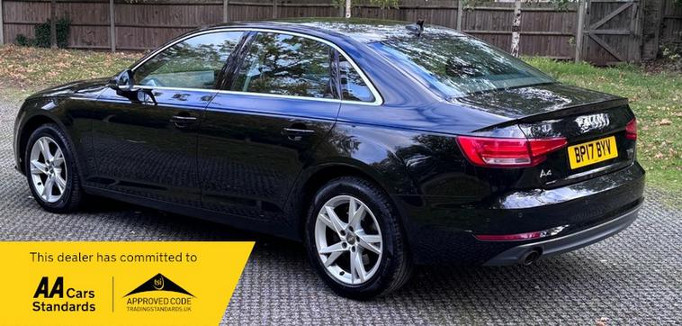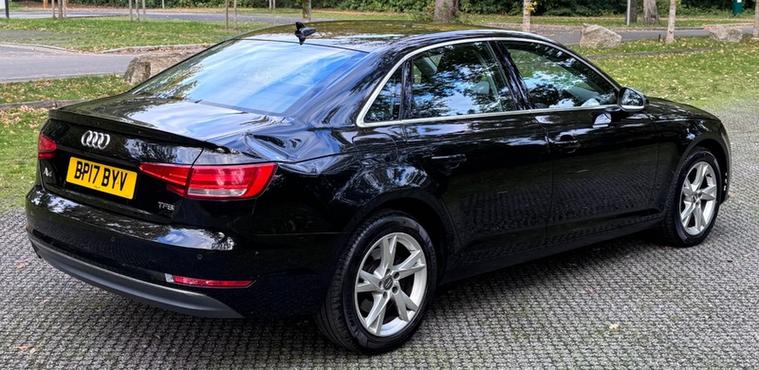? Key Highlights , Owners*Mot Valid Until 24 September 2026 *Service History *Last Service Mileage 50, 283*2 Keys*Ulez Complaint*Co2 Emissions 126 g/km *NOX Emissions 0.040 g/km *Hpi Clear*DVSA Verified Mileage 23k - 28k -32k - 39k - 46k - 50k , ???? Vehicle Features:, Navigation System - Climate Control - Parking Sensor(s) - 17' Alloy Wheels This 2017 Audi A4 TFSI Sport presents an exceptional ownership proposition with its remarkably low mileage of just 50577 miles, a testament to its careful use over the years. This well maintained example, having had only two owners, boasts a 1.4 litre petrol engine and adheres to the Euro 6 emission standards. Inside, you'll find comfort and convenience with Deluxe 3-Zone Electronic Climate Control and a Bluetooth Interface for seamless connectivity. Practicality is enhanced by the Parking System Plus, offering front and rear parking sensors, while the Light and Rain Sensor automatically manages headlights and wipers, ensuring a clear view in all conditions., , This Audi A4 TFSI Sport stands out with several key advantages that make it a superior choice. Its impressive fuel economy of 53 mpg means fewer stops at the petrol station, offering excellent value for money. Furthermore, its low CO2 emissions contribute to a more environmentally friendly drive, and it sits within a low insurance group, making ownership more affordable. These highlights collectively demonstrate the efficiency and cost effectiveness of this particular vehicle compared to others in its class., , , , ????? Warranty & Extras:, Parts and Labour Warranty Included-Free 12 Months AA Breakdown Cover-Flexible Warranty Packages Available (T&Cs apply)-Any Trial or Inspection Welcome, , ???? Modern Buying Experience:, Live Video Tours Available-Walk-Around Video Available-Unaccompanied Test Drive-100% Remote Purchase Available-Nationwide Home Delivery Available-No Pressure Sales Approach, , ?? Disclaimer:, We strive for accuracy in all listings. However, please verify all vehicle details, specify, 5 seats, Black, 2 owners, 17in Alloy Wheels - 7J 5-Spoke Y Design, 3-Spoke Leather Trimmed Multi-Function Sport Steering Wheel, 6-Airbag System, Air Inlets - Titan Black with Two Horizontal Inlays in Chrome, Anti Theft Locking Wheel Bolts, Anti-Theft Alarm, Audi Connect - 3 Month Trial, Audi Drive Select, Audi Smartphone Interface, Audi Sound System, Auto-Dimming Rear-View Mirror, Bluetooth Interface, Body Coloured Door Mirrors, Chrome-Plated Trims for Exhaust System, Comfort Dynamic Suspension, Cruise Control with Speed Limiter, DAB Digital Radio, Deluxe 3-Zone Electronic Climate Control, Door Mirrors - Electrically Adjustable and Heated with Built-in LED Indicators, Door Sill Trims with Aluminium Inlay, Drivers Information System - 5in Monochrome Display, ESC - Electronic Stabilisation Control inc ABS - ASR and EDL, Electric Boot Lid Release, Electric Windows - Front and Rear, Electromechanical Parking Brake, Electromechanical Power Steering, First Aid Kit and Warning Triangle, Front and Rear Floor Mats, High Gloss Package, ISOFIX Child Seat Mounting and Top Tether, Inlays - Aluminium Ellipse - Silver, Keyless Go, LED Interior Light Package, Light and Rain Sensor, Luggage Compartment Mat, MMI Navigation - SD Card Based, Manual Height Adjustment for Front Seats, Model and Engine Technology Badges at Rear, Multi Collision Brake Assist, Non-Smoking Package, Parking System Plus, Pop-Up Bonnet for Pedestrian Protection, Pre-Sense City, Radiator Grille - Twilight Grey Matt with Inlays in Chrome, Rear Diffuser in Twilight Grey Matt, Remote Central Locking, Seat Belt Monitoring, Space Saver Spare Wheel, Split-Folding Rear Seat Bench in 3 Parts - 40-20-40 with Rear Centre Armrest, Sun Visors - with Vanity Mirror, Tool Kit and Car Jack, Toolbar Preparation, Tyre Pressure Warning Light, Variable Restraint System, Windscreen with Acoustic Glazing, Xenon Headlights with LED Daytime Running Lights, ????Contact Us :Unit GH1, Nine Mile Ride Industry, Finchampstead, RG404NE.???? 01276914574 /01276914574,