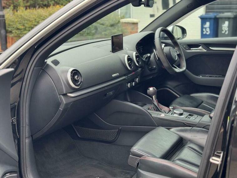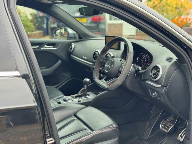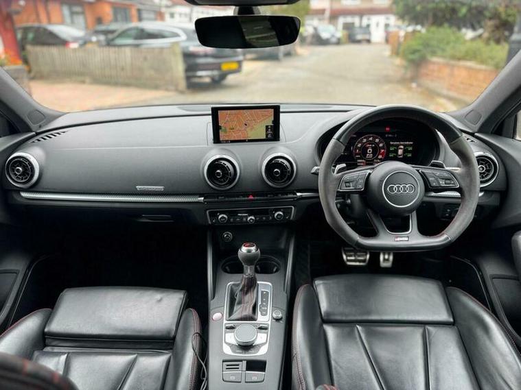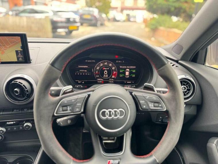 The RS3's interior is a sanctuary of sportiness and comfort, with Fine Nappa leather RS Super Sports seats in black with striking crescendo red stitching and an embossed RS3 logo. This model offers generous boot space, making it practical for everyday use. The performance is truly exceptional, with an impressive 0-62mph acceleration time of just 4.1 seconds, demonstrating its superior capability compared to other vehicles in its class. High beam assist further enhances the driving experience, providing added convenience and safety on every journey.