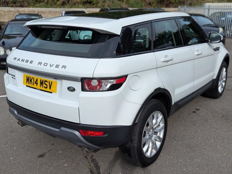 A Fantastically Spec'd. April 2014 on a '14' Plate EVOQUE 2.2 SD4 PURE with TECH Pack 9 Speed AUTO, 190 BHP, 5 Door, 4x4 4WD Hatchback in FUJI WHITE with HEATED BLACL LEATHER Interior and Sold with A FULL Service to Schedule with Oil & Oil, Air, Fuel & Pollen Filters together with a FULL CAMBELT Kit with WATER PUMP & COOLANT Change, a New 12 Months MOT, 3 Month / 3000 Mile 'DRIVER' Warranty & 12 Months Basic AA Breakdown Cover.