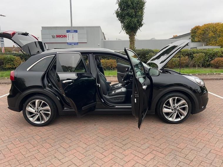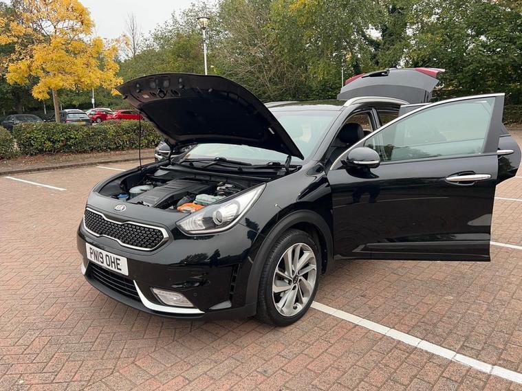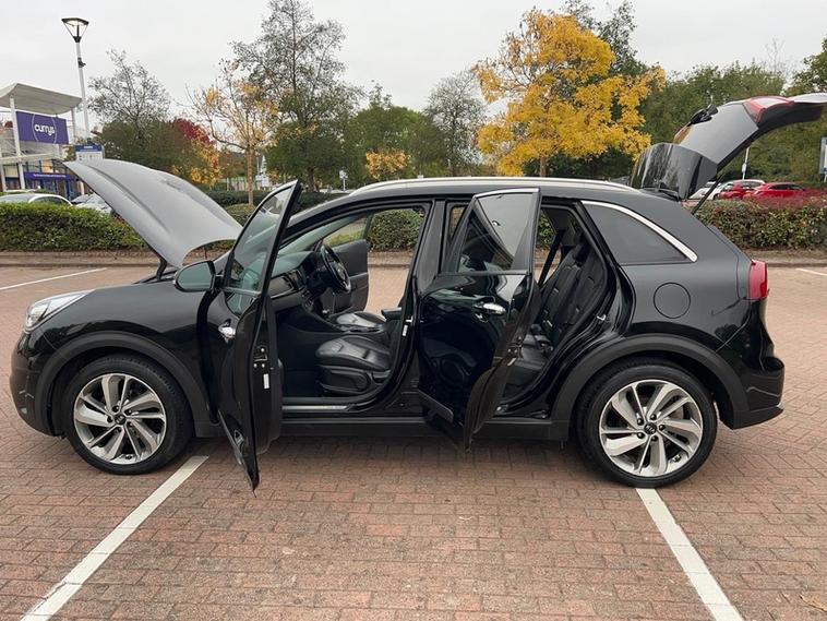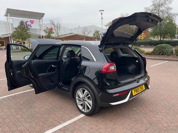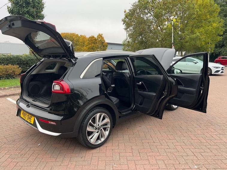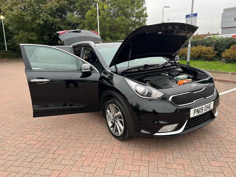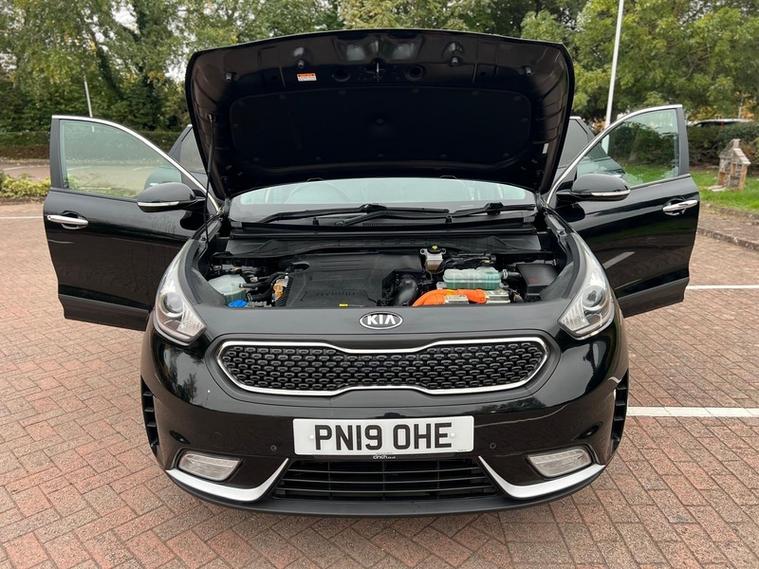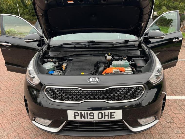 This 2019 Kia Niro 3 is presented with a clear vehicle history check, offering you peace of mind. This 1.6 litre petrol hybrid model, registered in 2019, is a Euro 6 compliant vehicle. Inside, you will find a premium 8 speaker JBL sound system complete with a subwoofer, external amplifier and front centre speaker. For convenience and safety, it features a reversing camera system integrated into the satellite navigation screen, aiding with parking. Comfort is enhanced by a heated steering wheel and heated front seats, perfect for colder journeys. Stay connected on the go with Bluetooth connectivity, allowing for seamless music streaming.