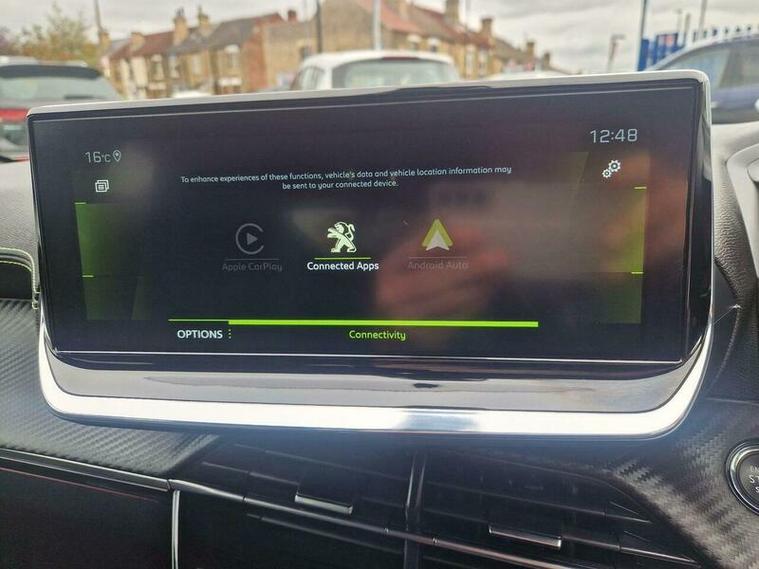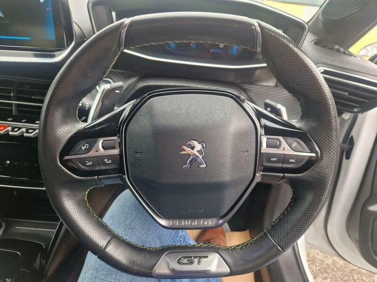 The PEUGEOT 208 features a range of attractive specifications, including diamond cut alloys, a 3D dashboard, and a rare colour combination of pearl white and black, which is especially desirable in this automatic version. Additional features include a rear boot spoiler, factory tinted windows, and black arch mouldings, enhancing the vehicle's overall appearance. The F1-style steering wheel adds a touch of sportiness to the driving experience.