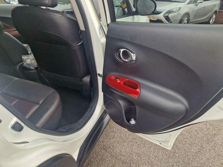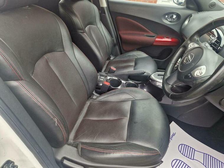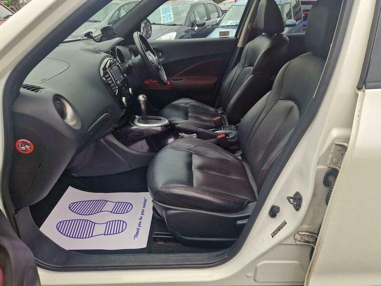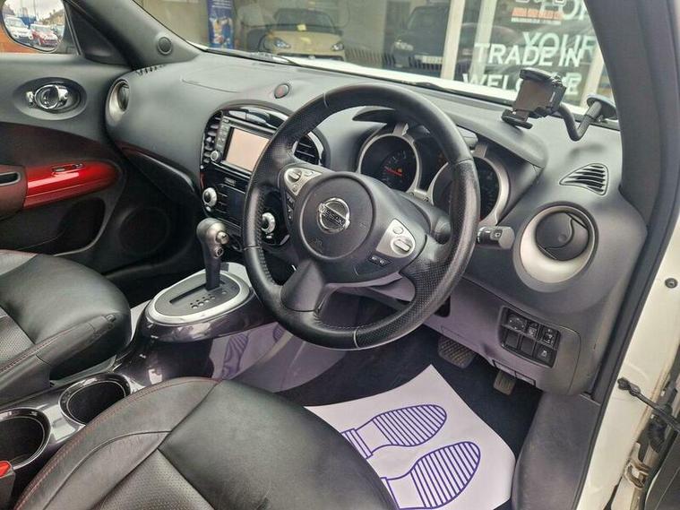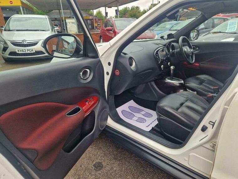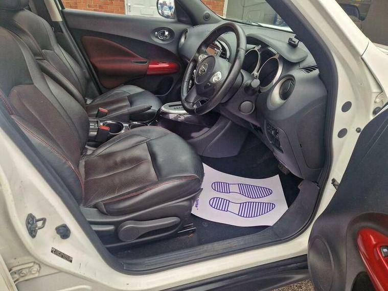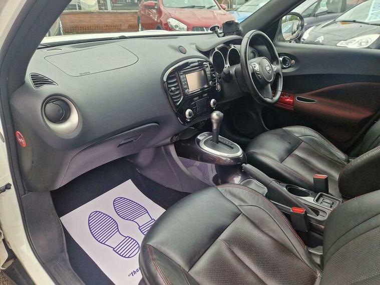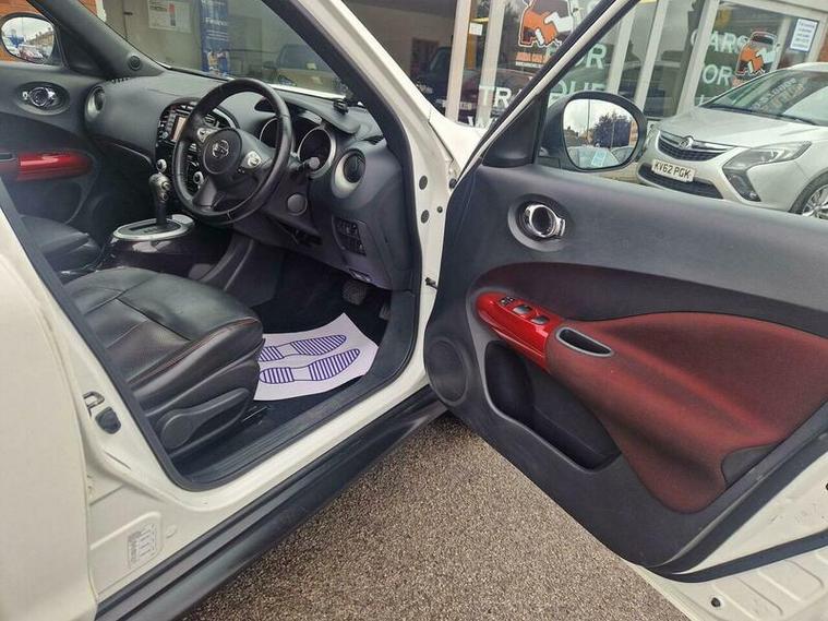 JUST COME INTO STOCK IS THIS RARER AUTOMATIC LOW MILEAGE VERSION OF THIS VERY POPULAR NISSAN JUKE TEKNA. WITH A LOW MILEAGE OF JUST 85, 000 WHICH IS ONLY AROUND 7, 000 PER YEAR. HAS DOCUMENTED SERVICE HISTORY. BEING THE TEKNA HAS LOADS OF FACTORY EXTRAS LIKE , BLACK LEATHER INTERIOR WITH RED STITCHING, HEATED SEATS, REVERSING CAMERA, SAT NAV, FULL BLUETOOTH, ALLOYS ETC... LOADS MORE. THE CAR DRIVES EXCELLENT, VERY COMFORTABLE DRIVE, WORKING AIR CONDITIONING. COMES WITH 2 REMOTE KEYS, LOADS OF RECEIPTS FOR WORKS DONE. MOT IS UNTIL NEXT MARCH.BUY WITH CONFIDENCE AS WE BELIEVE WE ARE THE ONLY DEALERSHIP THAT GIVES YOU A FULL 12 MONTHS MAIN DEALERSHIP STYLE WARRANTY ALONG WITH 12 MONTHS AA BREAKDOWN COVER FOR FREE. FIRST TO VIEW WILL BUY. FULL FINANCE FACILITY AVAILABLE ALONG WITH PART EXCHANGE. LICENCED FOR FINANCE.