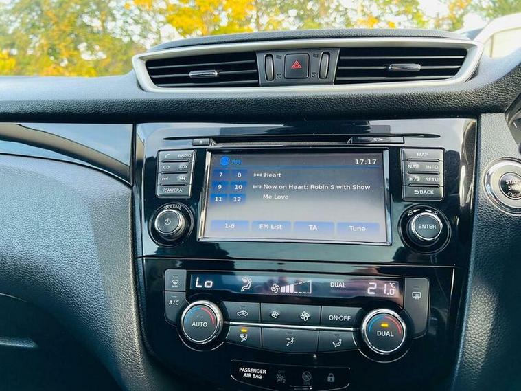 This 2016 Nissan Qashqai dCi N Connecta offers an exceptional ownership proposition with its impressive 74 mpg fuel economy. This Euro 6 compliant 1.5 litre diesel engine is paired with the N Connecta trim, providing a refined driving experience. Key features include Dual Zone Climate Control Air Conditioning for personalised comfort, and the Smart Vision Pack which incorporates front and rear parking sensors to aid manoeuvrability. The Tech Pack further enhances convenience with Bluetooth connectivity and a 360 degree camera system, complemented by the Intelligent Key for keyless entry.