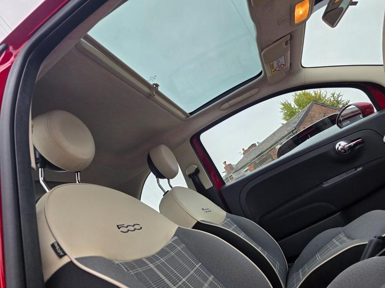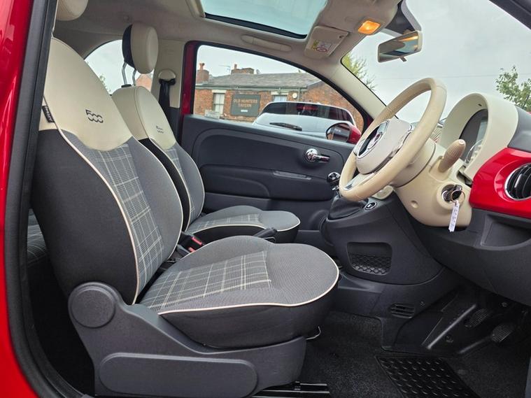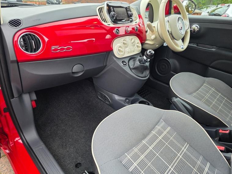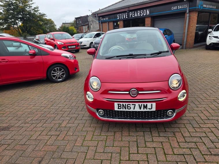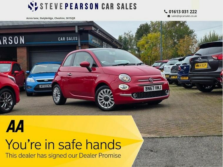 Steve Pearson Car Sales are Pleased to Present this Low Miles Fiat 500 1.25 Lounge in Red. Only 2 Former Keepers with Service History. All usual 500 refinements include....ABS, Air conditioning, allloy wheels, central locking, electric windows/mirrors, power steering, adjustable steering, 12v power socket, USB/AUX input, bluetooth, brake assist, cruise control, cup holders, daytime running lights, front airbags, front fog lights, heated door mirrors, hill start assist, ISOFix anchor point, DAB radio, touch screen media system, parking sensors, panoramic sunroof, side impact airbags, speakers, speed limiter, start stop system, steering wheel controls, traction control etc.... Super Stylish City Car. Looks and Drives Superb. Car comes with 2 Keys, professionally valeted and fully HPI checked. We welcome Part Exchange and can offer Great Finance Deals, Please take a look at our virtual showroom at dealer's website where we have over 60 cars in stock, for more information please telephone or pop in for a cup of tea! Our showroom and floodlit forecourt are open 7 days a week, Tameside's Finest Collection of Low Mileage Quality Cars