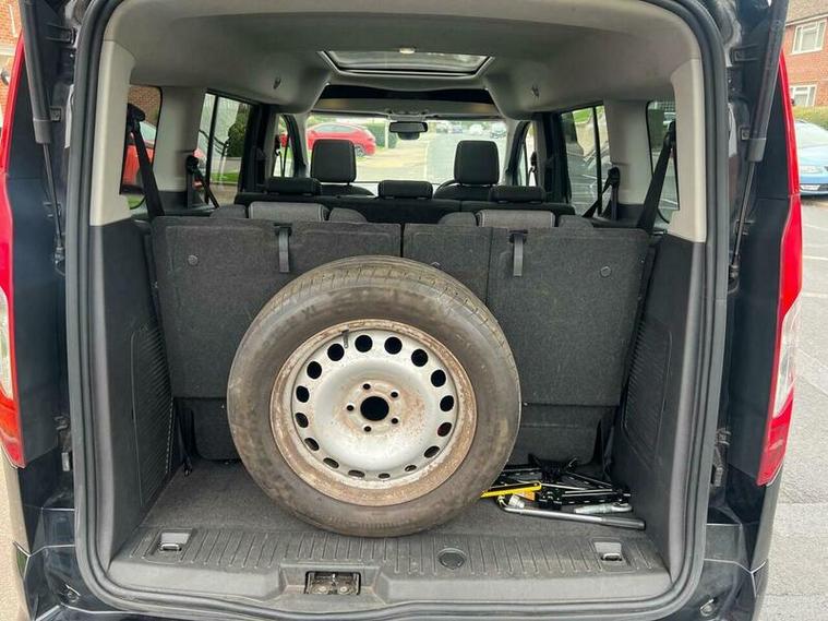 This Grand Tourneo Connect stands out with its impressive Panoramic Roof, complete with rear overhead stowage and bright roof rails, offering an airy and spacious cabin. It also features 16 inch alloy wheels, dual zone electronic automatic air conditioning for personalised comfort, and advanced door mirrors with blind spot assistance. The integrated Bluetooth handsfree system ensures seamless connectivity on the go. Furthermore, its low insurance group rating makes it an economical option for many drivers.