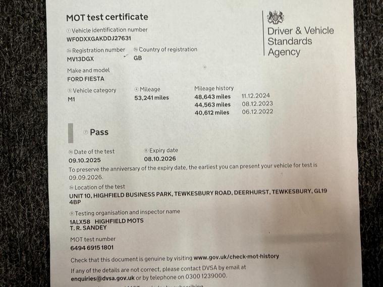 ABSOLUTE CARS have this 5 Door Ford Fiesta 1.25 Zetec Euro 5 in Solid Red with Alloys. An Ideal First Car + Only £35 a Year Tax ! Call in for a test drive, finance arranged & part exchange considered., 3 months warranty, Next MOT due 08/10/2026, Last serviced on 09/10/2025 at 53, 241 miles, Full service history, 5 seats, Red, 3 owners, 12V Power Socket - Front, 15in Alloy Wheels - 5x2 Spoke, ABS - Anti-lock Braking System, Aesthetic Lighting Package, Air Conditioning - Manual, Airbags - Curtain, Airbags - Driver Side Knee, Airbags - Front Passenger, Airbags - Head and Thorax, Airbags - Passenger Deactivation, Brake Warning Lights - Automatic Flashing of Brake Lights Under Heavy Braking, Bumpers - Front and Rear - Body Colour, Centre Console - with Trinket Tray - Two Cup Holders, Chrome Belt Line Finisher, Courtesy Light - Overhead with Theatre-Style Dimming, Courtesy Lights with Map Reading Lights, Door Handles - Body Colour, Door Mirrors - Electrically Operated and Heated, Drivers Airbag, EBA - Emergency Brake Assist, EBD - Electronic Brakeforce Distribution, ECOmode, EPAS - Electric Power Assisted Steering, ESP - Electronic Stability Programme, Electric Windows - Front with One Touch Lowering Drivers, Emergency Brake Warning - Automatic Hazard Warning Lights, Ford AM-FM CD Audio System, Ford Easy Fuel Capless Refuelling System with Misfuel Inhibitor, Front Fog Lights - Chrome Bezel Rings, Front Lower Grille Insert and Surround - Black, Front Seatback Map Pockets - Driver and Passenger, Front Upper Grille - Chrome Finish Surround, Front Upper Grille Insert - Chrome bars, Gear Knob - Leather, Gearshift Indicator Light, Gearshift Knob - Leather-Trimmed with Chrome Finish Bezel, Glovebox - Illuminated, Handbrake Release Knob - Chrome, Head Restraints - 2-way Adjustment, Head Restraints - Rear 2-Way Adjustment, Headlights - Courtesy Delay, Headlights - Follow Me Home, Headlights - Halogen Projector with Silver Bezel, Headliner - Woven, Heated Front Windscreen, High-Mounted Rear Brake Light, IPS - Intelligent Protection System, Interior Door Lever - Chrome Finish, LED Ambient Courtesy Lighting, Leather-Trimmed Handbrake, Loadspace Compartment Light, Loadspace Floor Carpet, Locking Wheel Nuts, MyKey, Passenger Airbag Deactivation Indicator, Passengers seat manual 2-way adjustment, Pollen Filter, Rake and Reach Steering Adjustable, Rear Courtesy Lights, Rear Seats Back - Carpet, Rear Spoiler - Body Colour, Remote Central Locking, Removable Package Tray, Seats - 60-40 Split Folding Back and Fixed Cushion, Seats - Drivers 4-Way Adjustment, Seats - Front Comfort Style, Seats - ISOFIX Mounting Brackets for Child Seats, Second Remote Ignition Key, Steering Wheel - 3-Spoke - Leather Trimmed with Bezel, Steering Wheel - Multifunction, Stowage Pockets - Driver and Front Passenger Seatbacks, Suspension - Front Stabiliser Bar, Tailgate Handle - Body Colour with Chrome Finisher, Trip Computer, Tyre Inflator Kit, USB and AUX Connection for External Music Devices, AS WE ARE AN AA CARS DEALER THIS VEHICLE COMES WITH 12 MONTHS AA BREAKDOWN COVER.