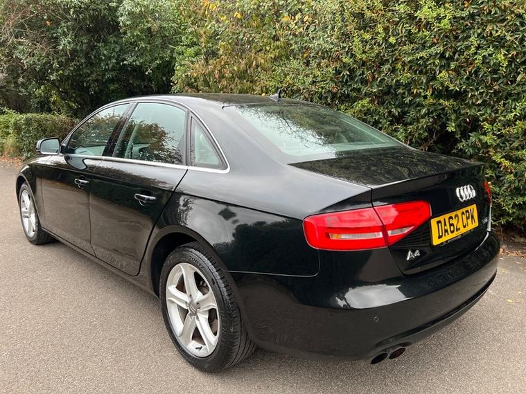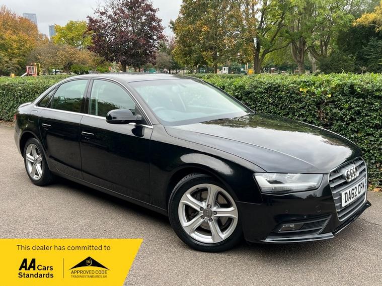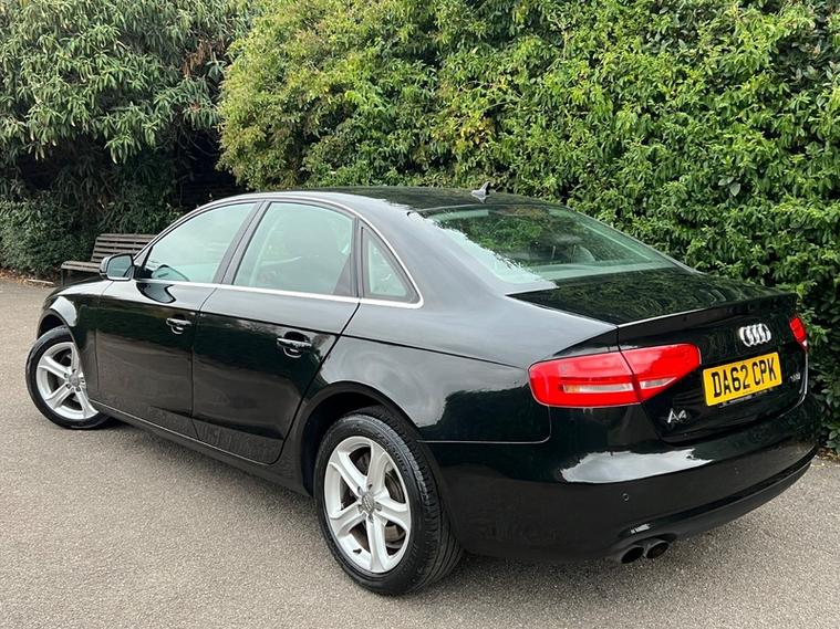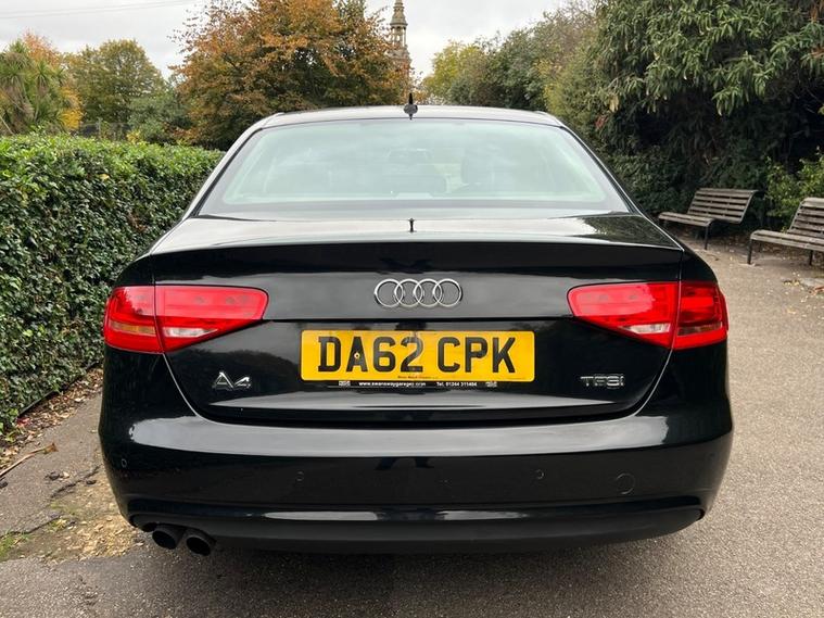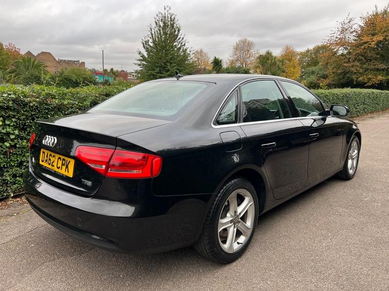 This 2013 Audi A4 TFSI SE presents a compelling proposition with its remarkably low mileage of just 70, 211 miles for its age, backed by a clear vehicle history check. This well appointed saloon features a smooth 2.0 litre petrol engine and SE trim, offering a refined driving experience. Inside, you'll find comfort and convenience with Electronic 3 Zone Climate Control, ensuring everyone enjoys the perfect temperature. Parking is made simpler with Acoustic Parking System Rear sensors, and the Bluetooth Interface allows for seamless mobile telephone connectivity., , The Audi A4 TFSI SE stands out with several key advantages. Its impressive fuel economy of 47 mpg means fewer stops at the petrol station, making it an economical choice for your journeys. This model also benefits from a low insurance group, which can help reduce your annual running costs. Furthermore, its low CO2 emissions contribute to a more environmentally friendly drive. For those who appreciate performance, the 0-62mph acceleration in just 6.9 seconds demonstrates a responsive and engaging power delivery. 2 Former Keepers, Fully serviced. We provide 12 months of AA Breakdown cover, so you can buy with confidence. Viewing is by appointment only. Please call to arrange a viewing. For more information, please visit dealer's website Thank you., 6 months warranty, 12 months MOT, Part service history, Excellent bodywork, Grey Cloth interior - Excellent Condition, Tyre condition Good, 5 seats, Black, Upgrades - Tyre Pressure Loss Indicator, Standard Features - 12V Power Socket, 12V Power Socket - Luggage Compartment, 17in Alloy Wheels - 5-Spoke Design, ABS - Anti-Lock Braking System, AUX-IN Socket, Acoustic Parking System - Rear, Airbags - Driver, Airbags - Front Passenger, Airbags - Front Side System, Airbags - Head System, Alarm - Thatcham Category 1, Audi Sound System, Auto Opening Boot Lid, Auto-Dimming Rear-View Mirror, Automatic Wipers with Rain Sensor, Climate Control - Electronic 3-Zone, Concert Radio, Cruise Control, Door Mirrors - Electrically Adjustable and Heated, Drivers Information System - DIS, ESP - Electronic Stability Programme, Electric Windows - Front and Rear, Electromechanical Power Steering, Front Centre Armrest, Front Fog Lights, Headlights - Automatic Adjustment, ISOFIX child seat preparation Front and Rear with passenger airbag deactivation switch, Inlays - Aluminium Trigon, Mobile Telephone Preparation - Bluetooth Interface, Remote Central Locking, Space Saver Spare Wheel, Split-Folding Rear Seats, Steering Wheel - 4-Spoke Leather Trimmed/MultiFunction, Steering Wheel - Height and Reach Adjustable, Steering Wheel - Multi-function, £6, 495