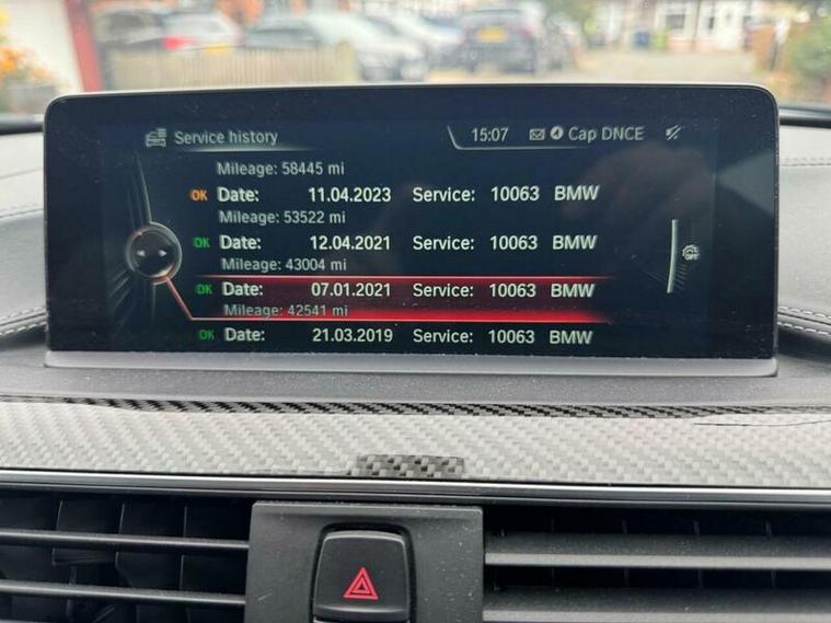 The car has a ghost immobiliser fitted which is worth £500 and is included, Full bmw service history, always serviced at BMW main dealer, last owner had the car for 6 years. This 2016 BMW M3 BiTurbo is a remarkable example of performance engineering. Powered by a potent 3.0 litre petrol engine, this Euro 6 compliant vehicle offers an exhilarating driving experience. Inside, you'll find a premium Harman Kardon speaker system for immersive audio, adaptive headlights for enhanced visibility, and a head up display to keep essential information in your line of sight. Practicality is also considered with extended storage solutions and a mechanical roller sunblind for the rear side windows, ensuring comfort for all passengers.