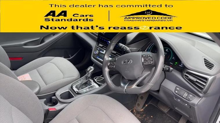 This car comes with 5 seats, White, 2 owners, 100 Percent MapCare Programme - 10 Years of Map Updates, 12V Power Outlet, 15in Alloy Wheels with Aerodynamic Wheel Trims - Design B, ABS - Anti-Lock Brake System, Air Conditioning - Driver-Only Mode, Air Conditioning - Dual Zone Climate Control, Airbags - Front - Front Side - Curtain and Drivers Knee, Arm Rest - Front with Storage, Automatic Dimming Rear View Mirror, Automatic Headlights with Dusk Sensor, Autonomous Emergency Brake, BlueLink, Bluetooth Connectivity, Centre Console - Tablet Storage, Cruise Control, Cup Holders - Front, Daytime Running Lights - LED, Deadlocks, Door Mirror Puddle Lights, Door Mirrors - Body Coloured, Door Mirrors - Electric Adjustment and Heated with Power Fold, Door Scuff - Chrome with IONIQ Logo, Drive Mode Select - Gear Lever, Driver Attention Alert - DAA, Drivers Seat Height Adjustment - Manual, Drivers Supervision Instrument Cluster with TFT Display - 7in, ECO DAS - ECO-Driving Assistant System, Electric Power Steering with Variable Drive Modes, Electric Windows - Front and Rear, Electric Windows - Front with Anti-Trap and One Touch Controls, Electronic Stability Control - ESC, Exterior Door Handles - Body Coloured with Chrome Insert, Fog Lights - LED Rear, Front Head Restraints - Vertical and Horizontal Adjustment, Front Passenger Airbag De-Activation Switch, Front Passengers Seat - Heated, Front Seat Back Pockets - Drivers Seat, Front Seat Back Pockets - Passengers Seat, HAC - Hill-Start Assist Control, Head Restraints - Rear with Vertical Adjustment, Headlights - Higher Beam LED, Headlights - Lower Beam LED, Heated Rear Windscreen, Heated Steering Wheel, Indicator Lights - Door Mirror - LED, Interior Door Handles - Chrome Effect, Interior Light - Centre, Interior Light - Luggage Compartment, Interior Light - Map Reading Lights, Lane Departure Warning System with Lane Keeping Assist, Leather Wrapped Steering Wheel, Luggage Net, Paddle Shift Gear Change, Parking Brake - Foot, Parking Sensors - Rear, Parking System - Rear Camera and Guidance System, Passenger Seat Height Adjustment - Manual, Phone Connection - Android Auto, Phone Connection - Apple CarPlay, Positioning Lights LED, Radiator Grille - Active Air Flap, Radiator Grille - Chrome, Radio - RDS and Digital Radio - DAB, Rear Air Vents in Centre Console, Rear Bumper - Two-Tone, Rear Lights - LED, Rear Spoiler with Integral LED Brake Light, Rear View Monitor, Remote Central Locking, Seats - Drivers Electric Lumbar Support, Seats - Heated Drivers, Side Body Moulding, Smart Key - Keyless Entry with Engine Start-Stop Button, Solar Glass with Windscreen Shade Band, Speakers - Upgraded Infinity Sound System - 1 Centre - 2 Tweeters - 2 Front - 2 Rear - 1 Subwoofer and 1 Ext. Amp, Split Folding Rear Seats - 60-40, Steering Wheel with Audio - Phone and Cruise Controls, Sun Visors with Driver and Passenger Illuminated Vanity Mirrors, Sunglasses Holder, Touchscreen Satellite Navigation - 10.25in, Tyre Pressure Monitoring System with Individual Tyre Display, Tyre Repair Kit, USB - Drivers Arm Rest - Charging Only, USB and AUX Connections - Front, Window Surround - Chrome Finish, Windscreen Washer Fluid Sensor and Warning Indicator, Wireless Phone Charging Pad, eCall,