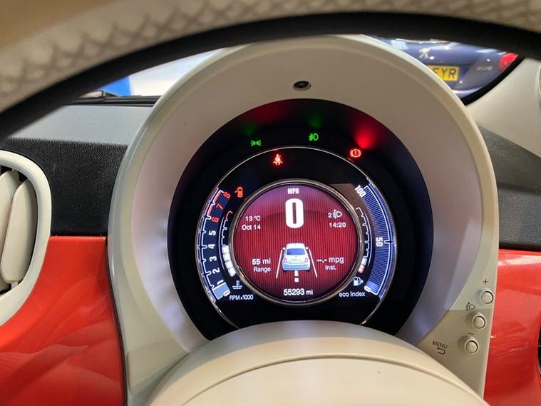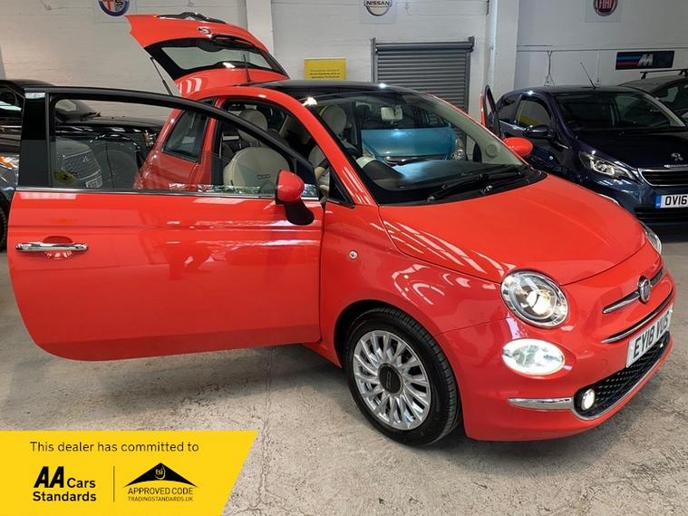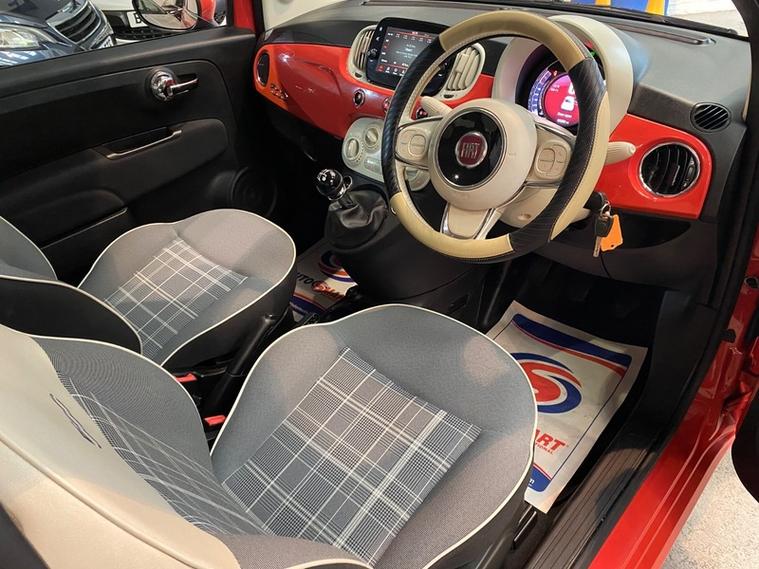 We are a family run business established since 1987, celebrating over 37 years of trading, we operate from a fully indoor premises ideal for viewing in any weather, all our vehicle's are hpi clear & come with 3 months comprehensive warranty + 12 months basic AA breakdown cover, we are an AA cars assured & trading standards approved dealership, we are pleased to offer this FIAT 500 1.2 Lounge Hatchback 3dr Petrol Manual Euro 6 (s/s) (69 bhp), very well presented example throughout, low mileage covering just 55293 miles from new, all round low running cost's & ulez compliant, fantastic looking vehicle in stunning fiat carallo red, very well cared for & maintained, vehicle supplied with 2 keys, owners book pack, service book, service history boasting 6 recorded services, new 12 months mot upon purchase, high spec model including glass pano roof.