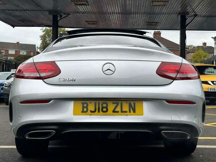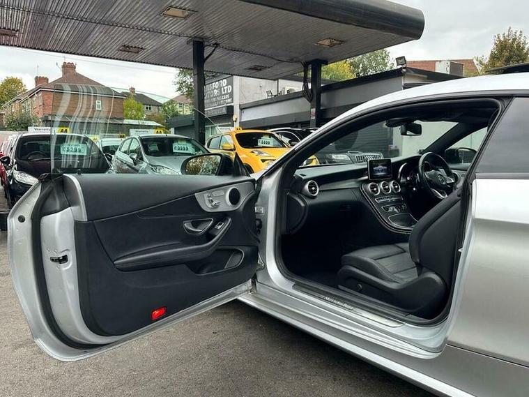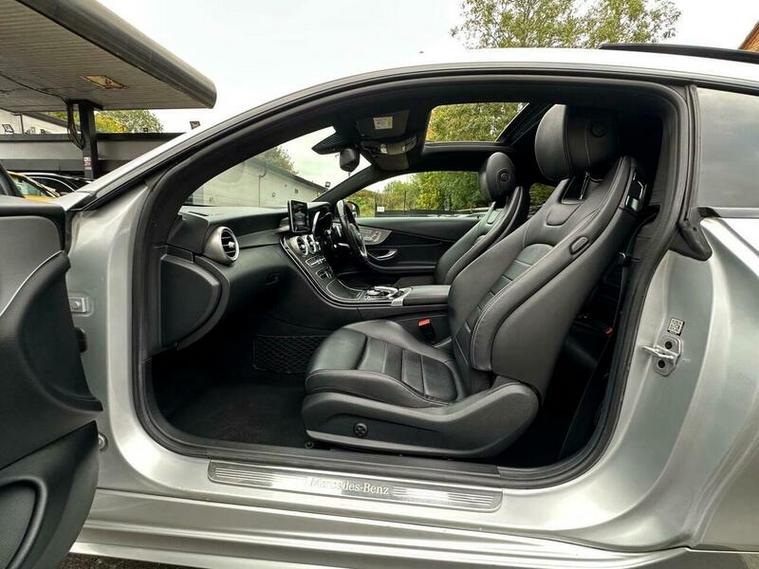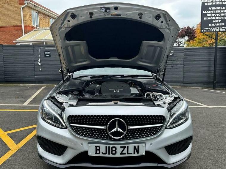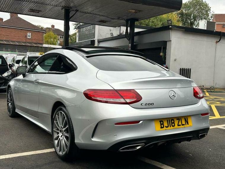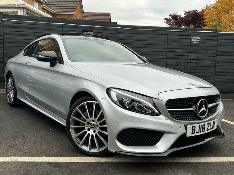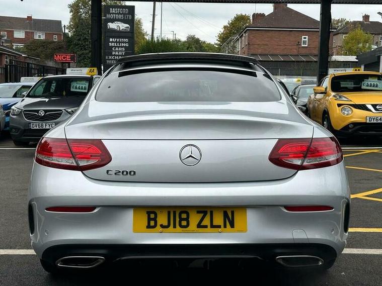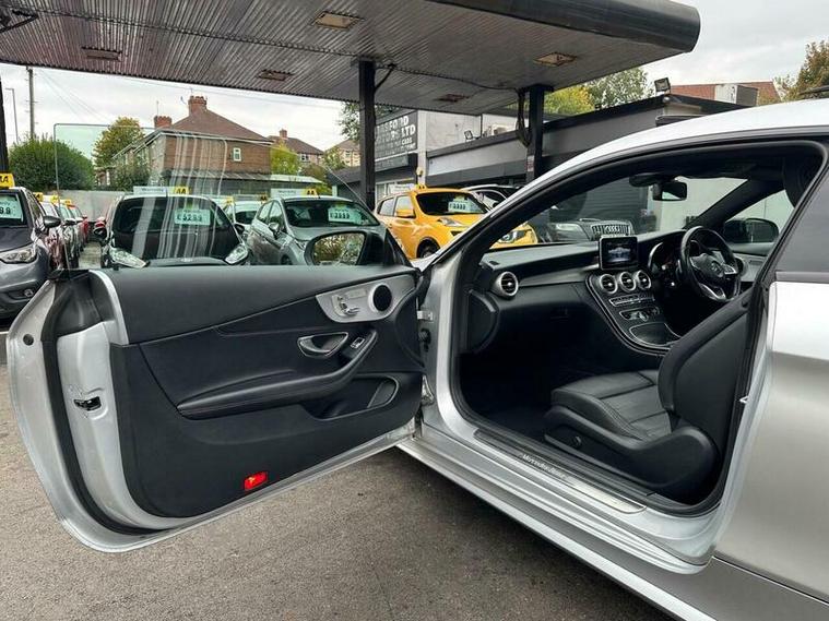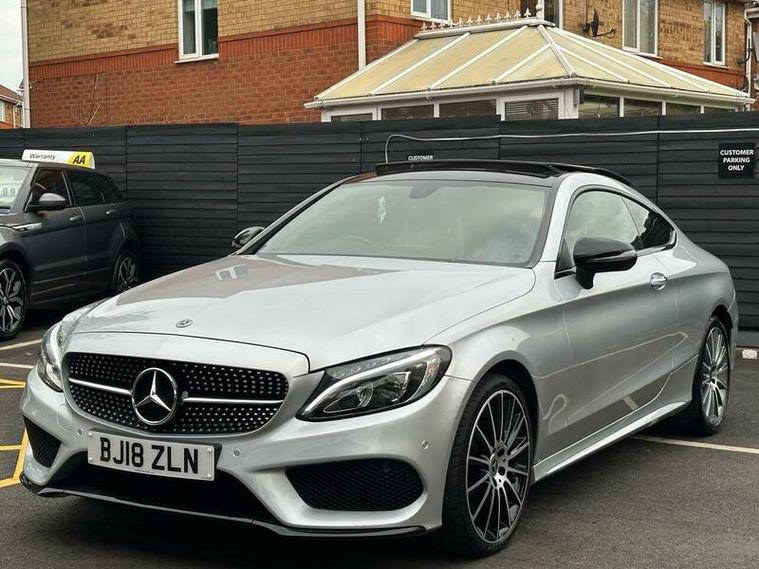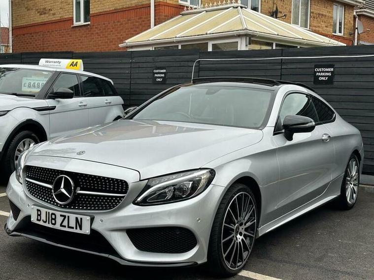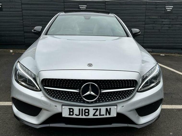 Basford motors delighted to offer this lovely Mercedes-Benz C Class 2.0 C200 AMG Line (Premium) G-Tronic+ Euro 6 (s/s) 2dr Boasting a full service history and an MOT valid until October 2026, this 2018 Mercedes-Benz C Class C200 AMG Line (Premium) presents a compelling proposition. Powered by a 2.0L petrol engine and meeting Euro 6 emissions standards, this vehicle has had only two owners. The AMG Line trim enhances its sporty appeal, while the Premium Package adds desirable features such as keyless entry, an opening panoramic sunroof, and memory seats. For convenience, it includes THERMATIC automatic climate control, a reversing camera, Bluetooth connectivity for hands-free calls, and Active Parking Assist with front and rear sensors.all original manual books and 2 keys available