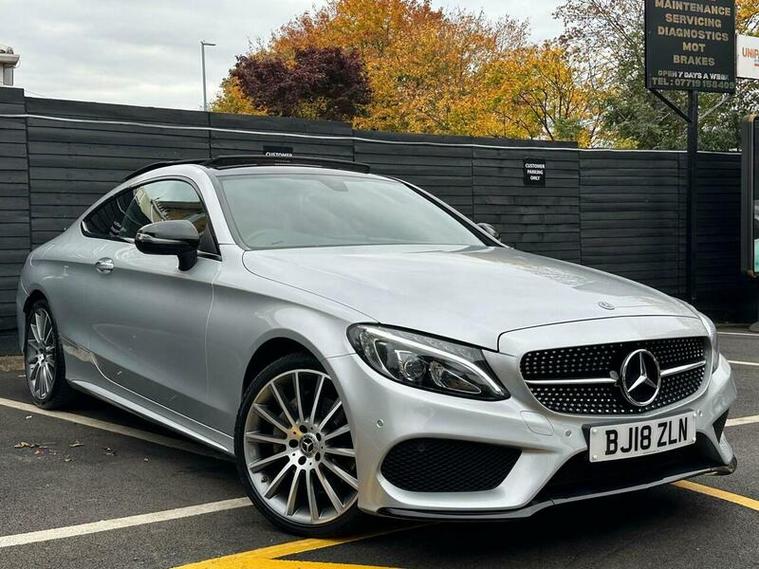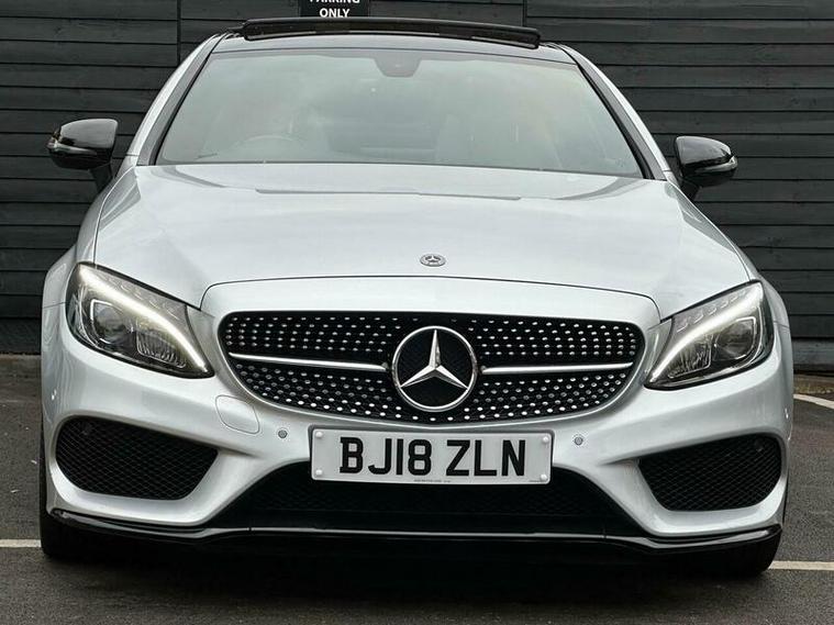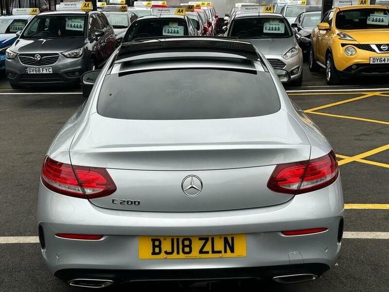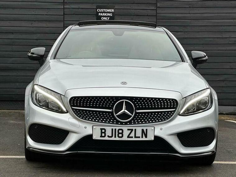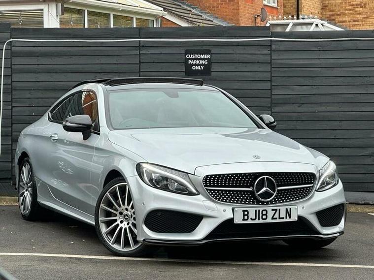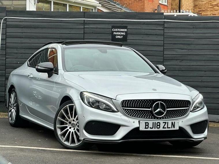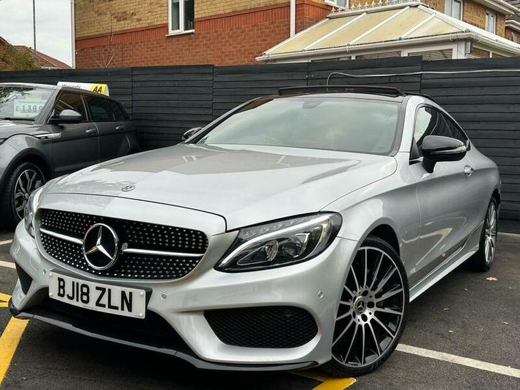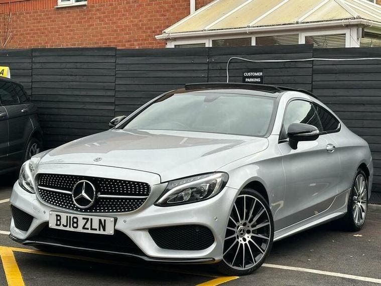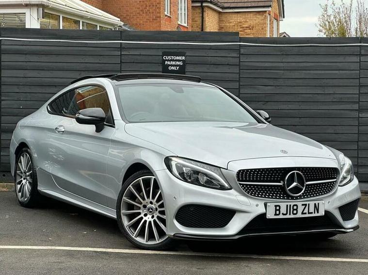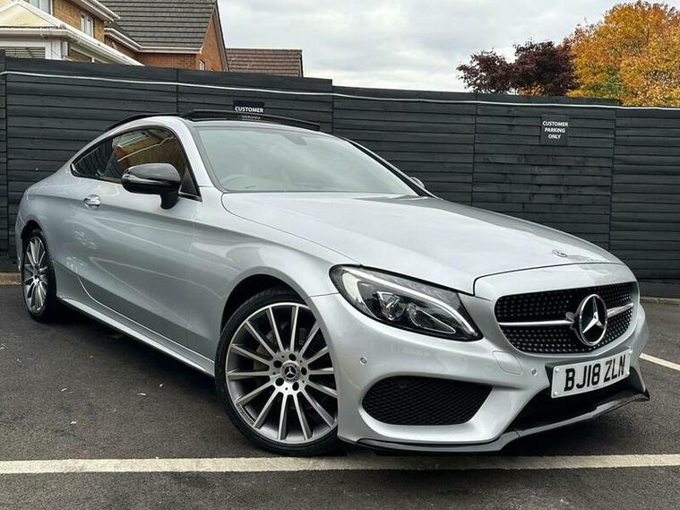 Basford motors delighted to offer this lovely Mercedes-Benz C Class 2.0 C200 AMG Line (Premium) G-Tronic+ Euro 6 (s/s) 2dr Boasting a full service history and an MOT valid until October 2026, this 2018 Mercedes-Benz C Class C200 AMG Line (Premium) presents a compelling proposition. Powered by a 2.0L petrol engine and meeting Euro 6 emissions standards, this vehicle has had only two owners. The AMG Line trim enhances its sporty appeal, while the Premium Package adds desirable features such as keyless entry, an opening panoramic sunroof, and memory seats. For convenience, it includes THERMATIC automatic climate control, a reversing camera, Bluetooth connectivity for hands-free calls, and Active Parking Assist with front and rear sensors.all original manual books and 2 keys available