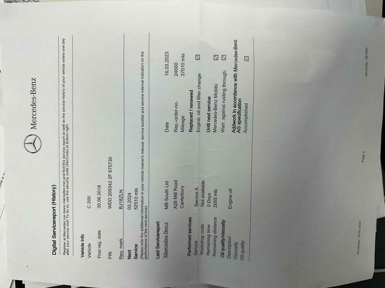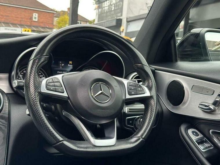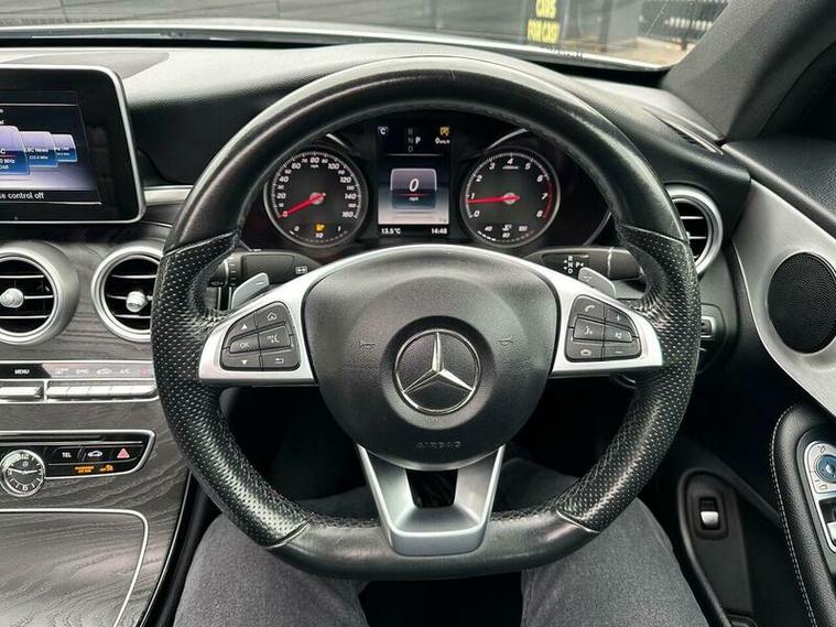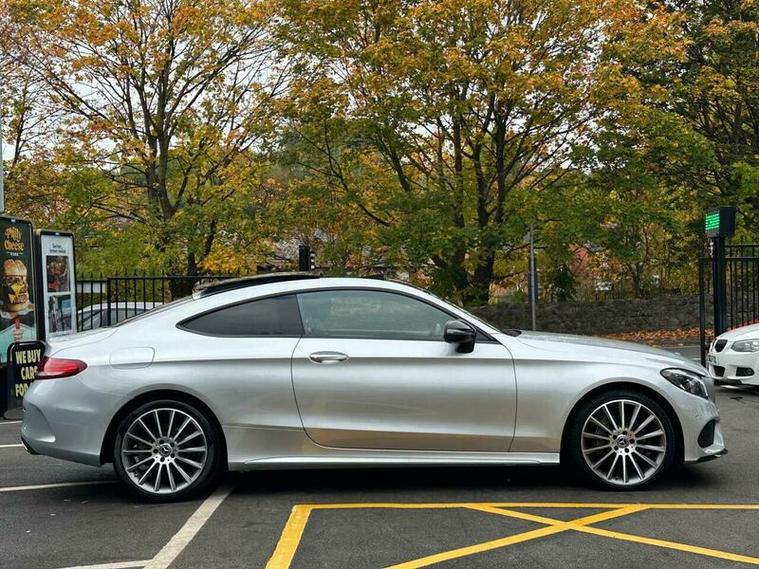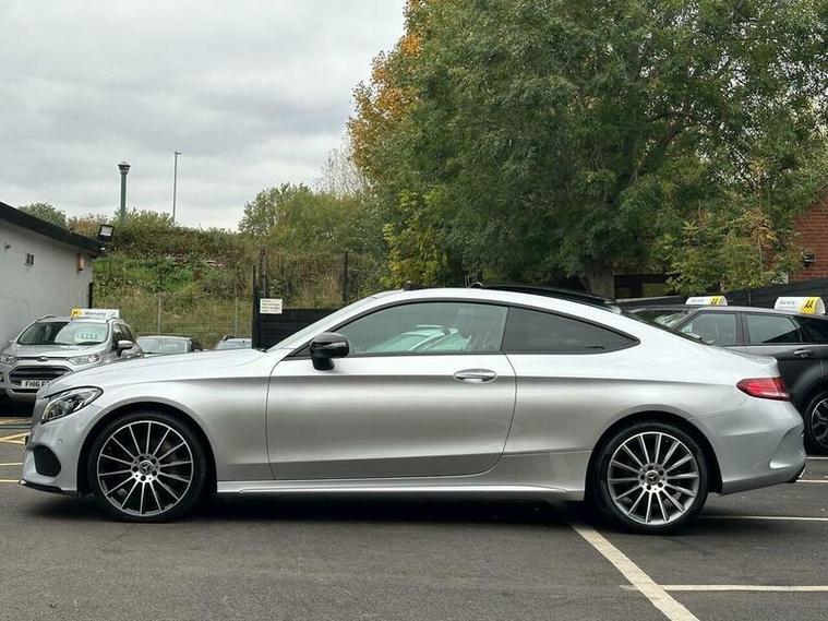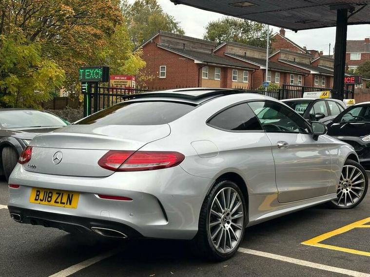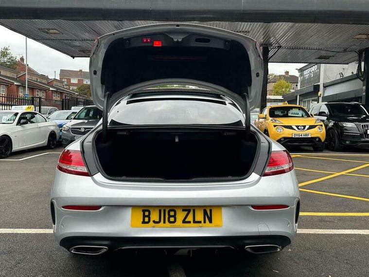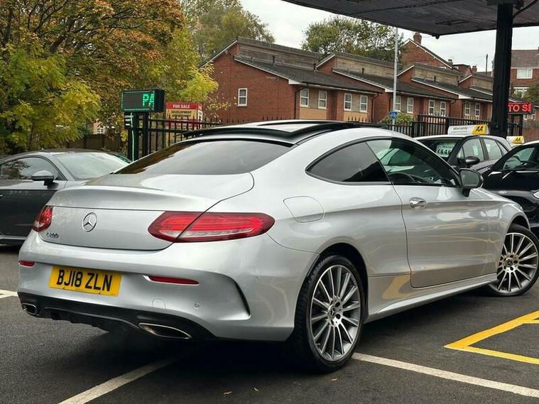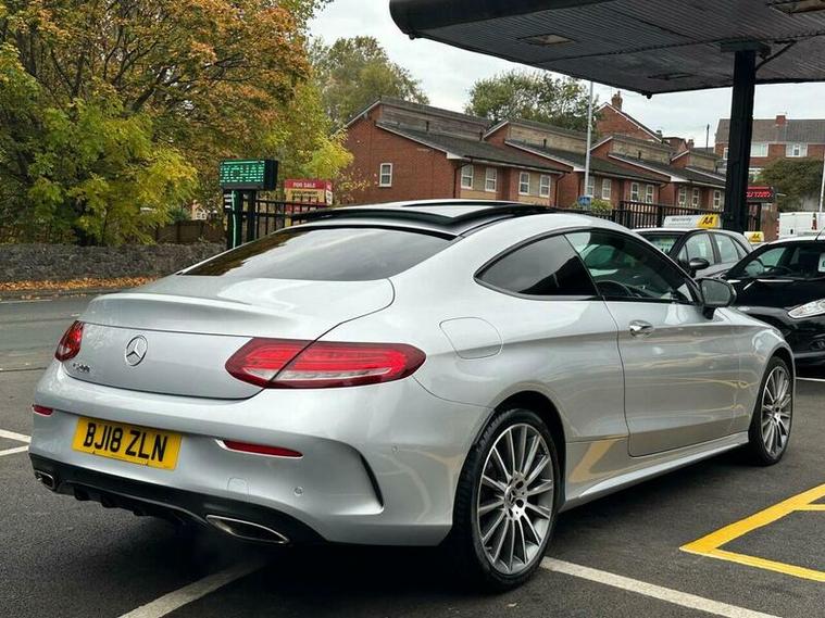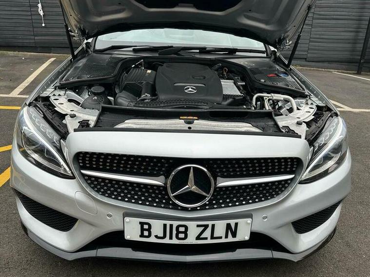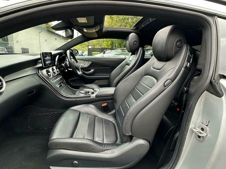 Basford motors delighted to offer this lovely Mercedes-Benz C Class 2.0 C200 AMG Line (Premium) G-Tronic+ Euro 6 (s/s) 2dr Boasting a full service history and an MOT valid until October 2026, this 2018 Mercedes-Benz C Class C200 AMG Line (Premium) presents a compelling proposition. Powered by a 2.0L petrol engine and meeting Euro 6 emissions standards, this vehicle has had only two owners. The AMG Line trim enhances its sporty appeal, while the Premium Package adds desirable features such as keyless entry, an opening panoramic sunroof, and memory seats. For convenience, it includes THERMATIC automatic climate control, a reversing camera, Bluetooth connectivity for hands-free calls, and Active Parking Assist with front and rear sensors.all original manual books and 2 keys available