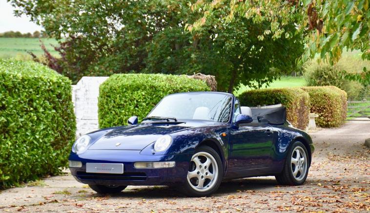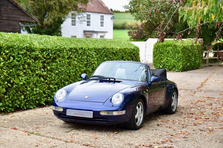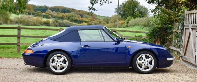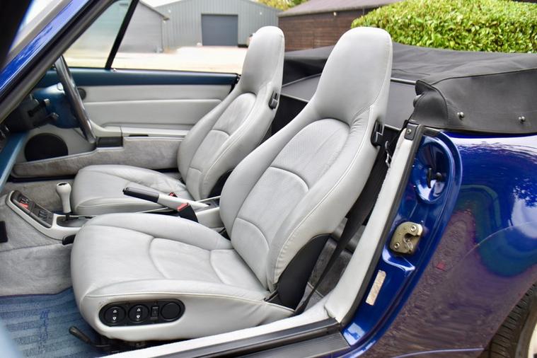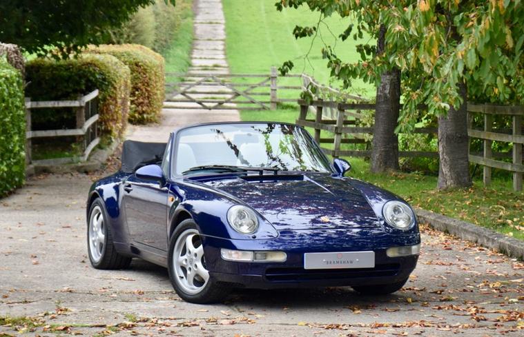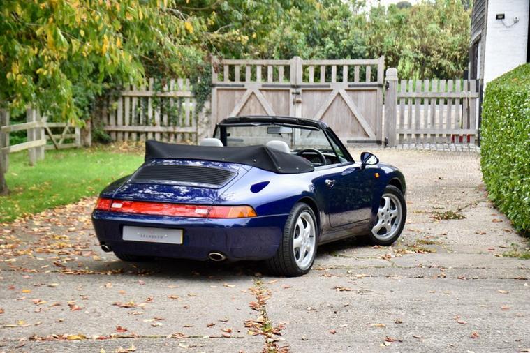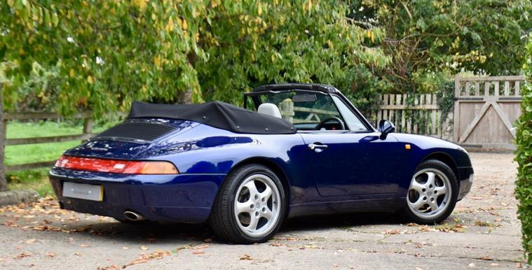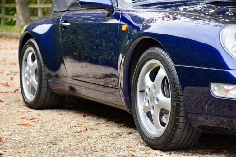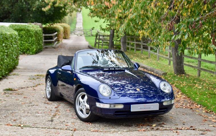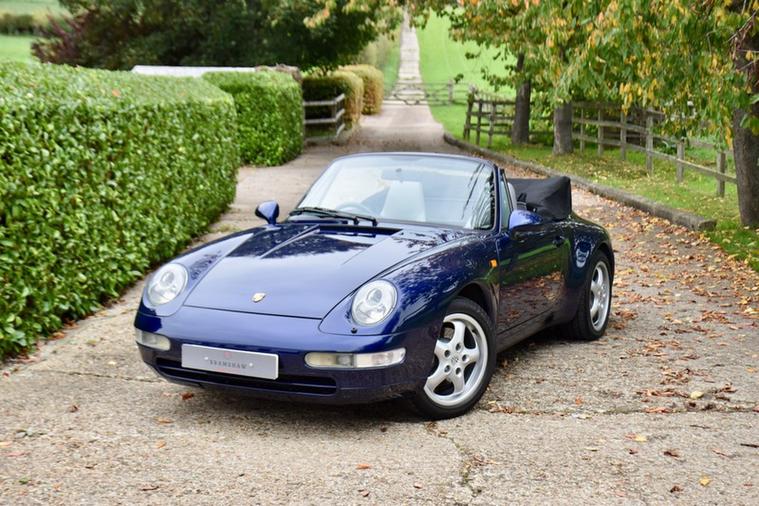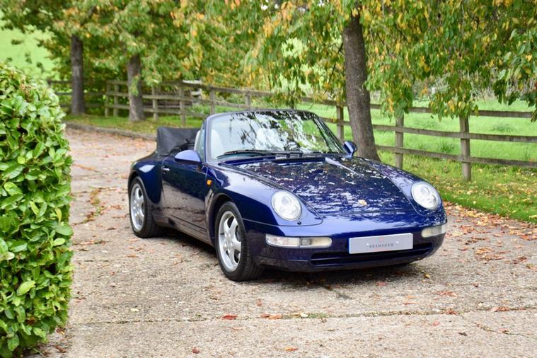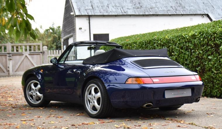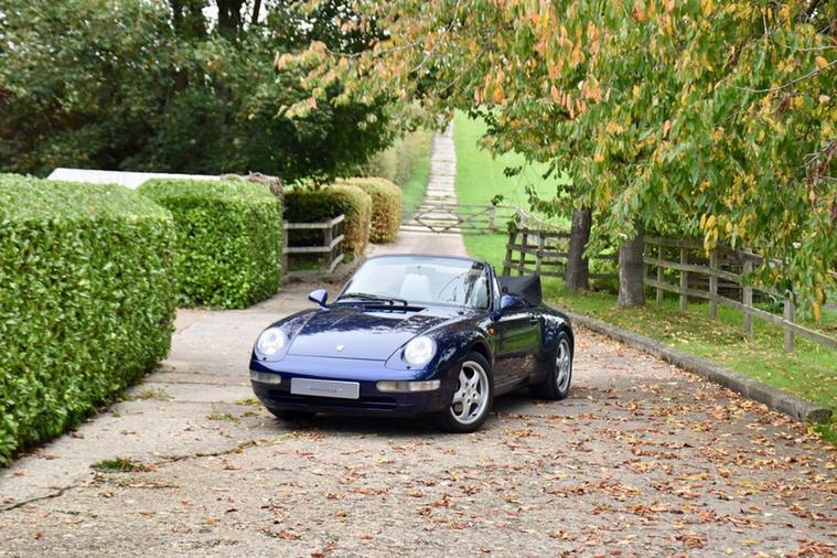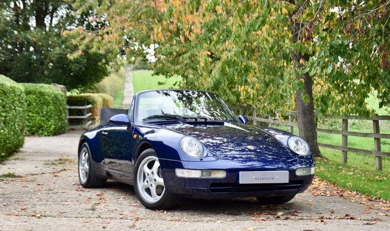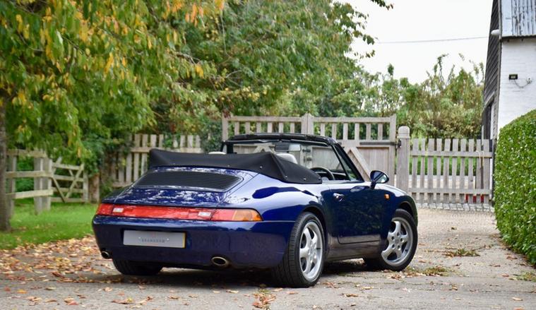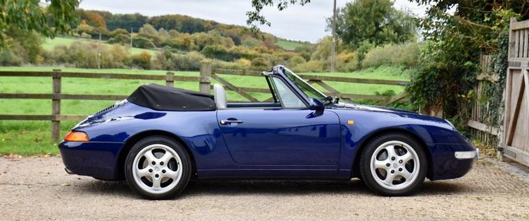 1995 'M' registered with 77, 578 miles from new. Iris Blue Metallic with Grey Leather, Dark Blue Dash, Steering Wheel and Door Tops. 17' Cup Alloy Wheels, Porsche Crested Wheel Centres, H.I.D Headlamps, Electrically Height Adjustable Leather Sports Seats with Seat Heating, Electric Folding Convertible Roof, Electric and Heated Door Mirrors, Wind Deflector, Black Brake Calipers, Tiptronic Automatic Gearbox. This is a Nicely Kept Porsche 993 Cabriolet which was first registered in the Channel Islands. It has a Great Service History with lots spent in 2025 to Overhaul the Braking System including New Hoses, All 4 Brake Discs and Pads, plus Calipers removed and serviced.