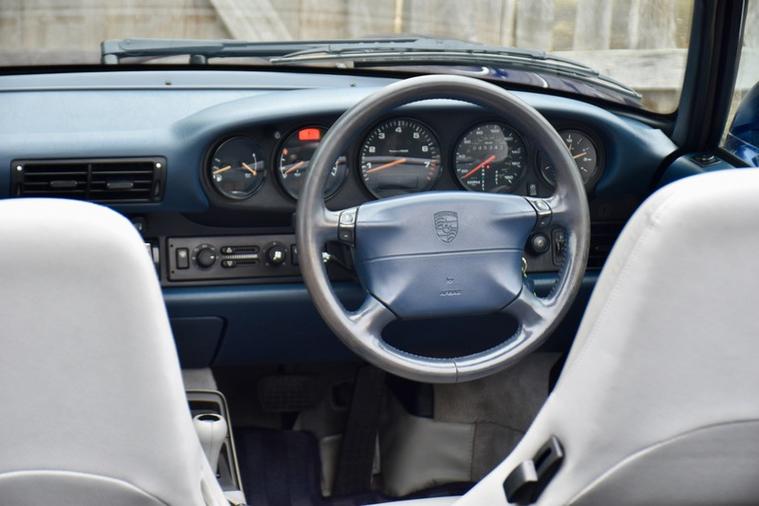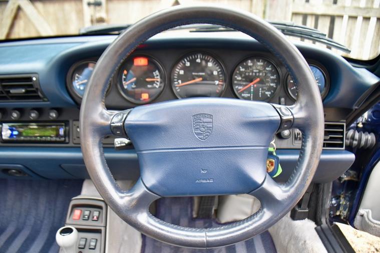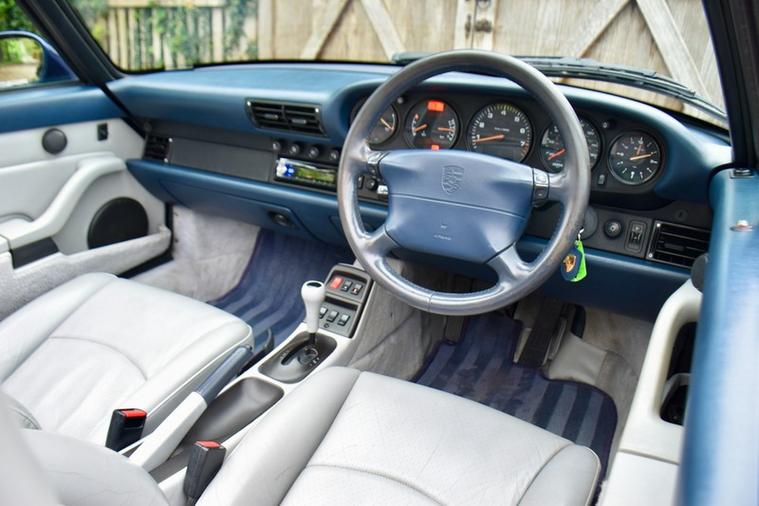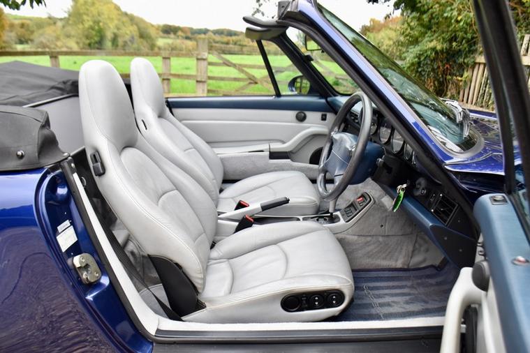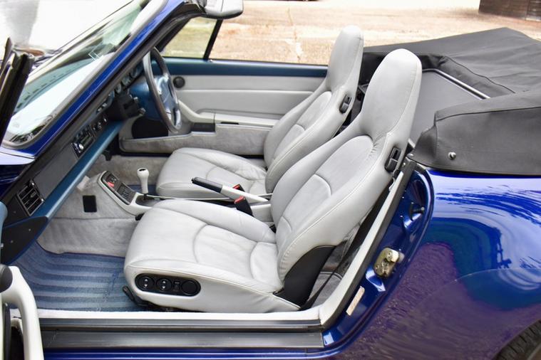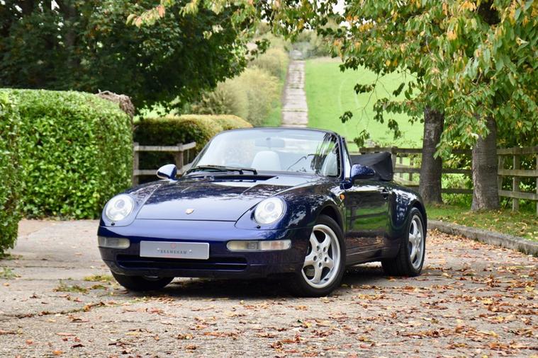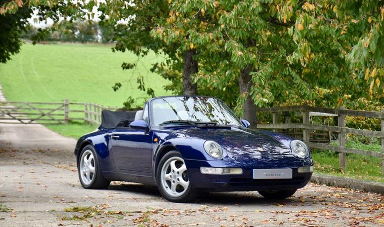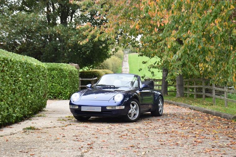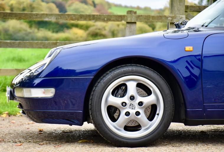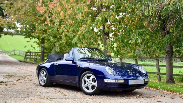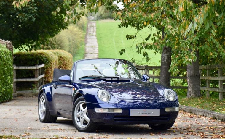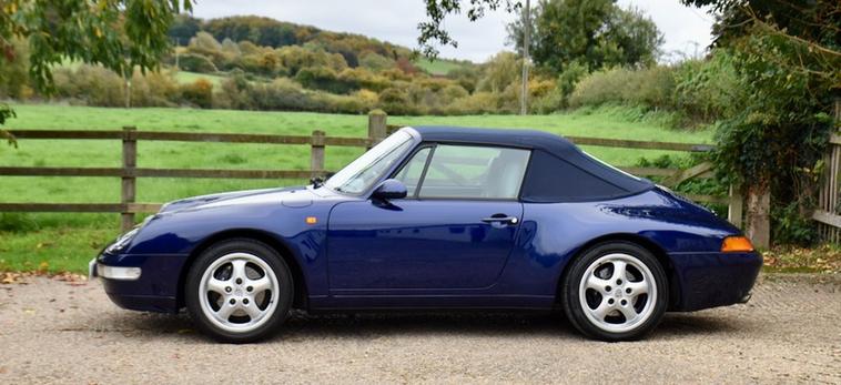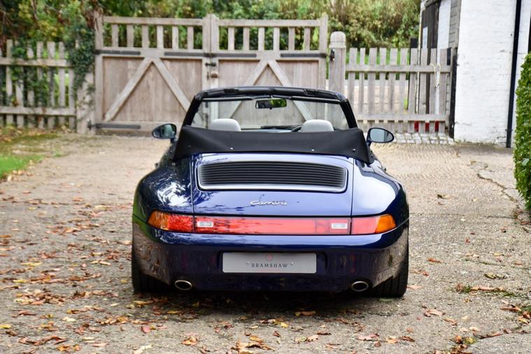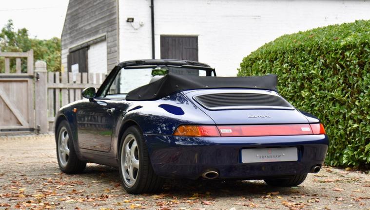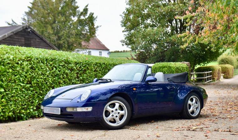 1995 'M' registered with 77, 578 miles from new. Iris Blue Metallic with Grey Leather, Dark Blue Dash, Steering Wheel and Door Tops. 17' Cup Alloy Wheels, Porsche Crested Wheel Centres, H.I.D Headlamps, Electrically Height Adjustable Leather Sports Seats with Seat Heating, Electric Folding Convertible Roof, Electric and Heated Door Mirrors, Wind Deflector, Black Brake Calipers, Tiptronic Automatic Gearbox. This is a Nicely Kept Porsche 993 Cabriolet which was first registered in the Channel Islands. It has a Great Service History with lots spent in 2025 to Overhaul the Braking System including New Hoses, All 4 Brake Discs and Pads, plus Calipers removed and serviced.