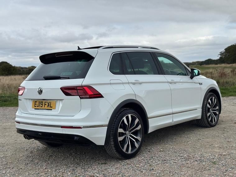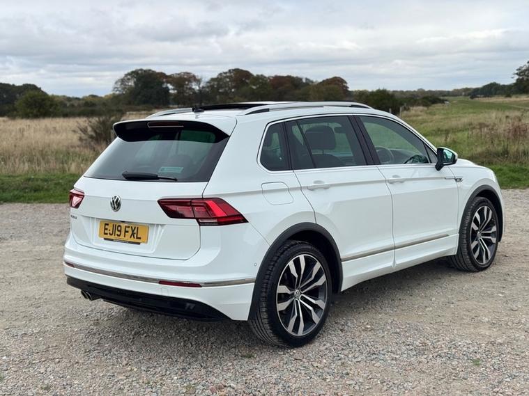 This 2019 Volkswagen Tiguan TSI EVO R-Line presents a superb ownership proposition, having been meticulously maintained by its single owner and boasting a clear vehicle history check. As a Euro 6 compliant model, it features a responsive 1.5 litre petrol engine, offering an efficient and enjoyable driving experience. The R-Line trim enhances its already stylish design, while a suite of advanced technology ensures convenience and safety. Notable features include Trailer Assist, which works in conjunction with Park Assist and a Rear View Camera, providing comprehensive parking assistance with front and rear sensors and a 360 degree camera via the Area View system. Keyless entry and start, coupled with a full electric tailgate, add to the effortless usability, while the Discover Navigation Pro system with integrated voice activation and gesture control, alongside Car-Net App-Connect, keeps you informed and entertained., , The Tiguan R-Line stands out with its impressive acceleration, reaching 0-62mph in just 9.2 seconds, demonstrating its dynamic performance. This model also benefits from low CO2 emissions, making it an environmentally conscious choice, and a low insurance group, which can help reduce running costs. Furthermore, the generous boot space offers ample practicality for everyday needs and longer journeys. These highlights collectively indicate that this Volkswagen Tiguan offers a superior combination of performance, efficiency, technology, and practicality compared to many other vehicles in its class., 3 months warranty, 12 months MOT, Full service history, Clean bodywork, Interior - Clean Condition, Tyre condition Good, 5 seats, White, 1 owner, Upgrades - Area View with Park Assist, Discover Navigation Pro Touch-Screen Navigation-DVD Infotainment System with Integrated Voice Activation - Gesture Control - Car-Net Guide and Inform Plus and Car-Net App-Connect, Tyre Pressure Monitoring System, Keyless Entry-Keyless Start and Full Electric Tailgate Operation, Trailer Assist including Park Assist and Rear View Camera, Standard Features - 12V Socket - Luggage Compartment, 12V Socket in Centre Console in Storage Area, 12V Socket on Rear of Front Centre Armrest, 18 Degree Angle of Approach, 20in Alloy Wheels - Suzuka, ABS - Anti-Lock Braking System, Active Bonnet, Active Info Display, Adaptive Cruise Control, Airbags, Alarm with Interior Protection with Deactivation via Infotainment System, Aluminium-Look Decorative Inserts in Dash and Door Panels, Ambient Lighting Pack, Automatic Coming-Leaving Home Lighting Function, Automatic Dimming Rear View Mirror, Automatic Hazard Lights Activation Under Emergency Braking, Black Rooflining, Body Coloured Bumpers and Door Handles, Body-Coloured Door Mirrors with Integrated Indicators, Body-Coloured Roof Spoiler - Rear, Car-Net App Connect, Car-Net Guide and Inform (3 Year Subscription From New), Car-Net Security and Service including eCall, Carpet Mats - Front and Rear, Chrome Side Window Surrounds, Chrome Trim on Radiator Grille - Upper and Lower, Climate Control - 3Zone Electronic Air Conditioning with Automatic Air Recirculation, Composition Media System, Cup Holders - Front x2, Discover Navigation Touch-Screen Navigation-Infotainment System with Car-Net Guide and Inform, Driver Alert System - Fatigue Detection, Driver Profile Selection - Choice of Three Settings - Eco - Normal and Sport Modes, Drivers and Passengers Safety Optimised Head Restraints, Dusk Sensor - Automatic Driving Lights, Dynamic Light Assist, ESC - Electronic Stability Control, Electric Windows - Front and Rear, Electrically Foldable Door Mirrors, Electronic Engine Immobiliser, Electronic Parking Brake with Auto Hold Function, Folding Table on Back of Front Seats, Front Air Intake with Chrome Strip, Front Assist - Radar Sensor Controlled Distance Monitoring System - City Emergency Braking System and Predictive Pedestrian Protection, Front Centre Armrest with Storage Compartment - Longitudinal and Height Adjustable and Two Rear Air Vents, Front Fog Lights with Static Cornering Function, Front Footwell Illumination, Front Passengers Seat Folding Backrest, Front Seat Back Storage Pockets, Front Seats with R-Line Logo on Rear Seat Backrest, Glovebox - Cooled, Heated Front Seats, Heated Rear Window, Heated Windscreen Washer Jets, Height and Reach Adjustable Steering Wheel, Height-Adjustable Front Three-Point Seat Belts with Tensioners, High Level 3rd Brake Light, Instrument Lighting - White Adjustable Panel Illumination, Interior Light Delay, Isofix Child Seat Preparation - Easy-Fit - For 2 Outer Rear Seats, LED Headlights with Dynamic Light Assist, LED Rear Lights, LED Rear Number Plate Lights, Lane Assist, Load Lashing Points x4 in Luggage Compartment, Load Through Provision with Two Cup Holders when Folded Down, Luggage Compartment Cover - Removable, Luggage Compartment Light, Multifunction Computer, Panoramic Sunroof, Parking Sensors - Front and Rear, Pedals - Stainless Steel, Piano Black Decorative Inserts in Centre Console, Piano Black Front Air Intake and Rear Diffuser, Power Assisted Steering - Speed Sensitive, Pre-Crash Preventive Occupant Protection, Premium USB Cable, Progressive Steering, R-Line Styling Pack, Rain Sensor, Reading Lights - Front and Rear x2 Incorporating LED Technology, Rear Tinted Glass - B Pillar Backwards - Approx 65 Percent Tinted, Rear Wash Wipe with Intermittent Wipe, Remote Central Locking with 2 Remote Folding Keys, Remote Tailgate Unlocking via Key Fob, Rigid Safety Cell with Front and Rear Crumple Zones, Roof Rails - Silver Anodised, Seats - Front Lumbar Support, Seats - Height Adjustment - Front, Silver Front Underbody Protection and Rear Diffuser, Sliding Rear Bench Seat, Spare Wheel - Space Saver Steel, Split Folding Rear Seat Backrests 40-20-40, Steering Wheel - Multifunction - Leather Trimmed with Paddle Shift, Storage Compartment in Drivers and Front Passenger Door for 1.5 Litre Bottle, Storage Compartment in Rear Doors, Storage Compar