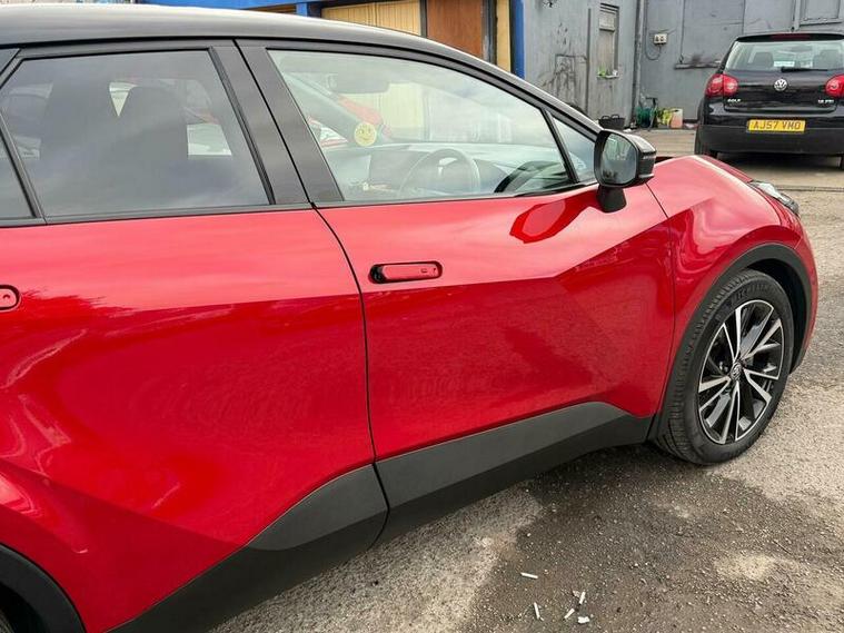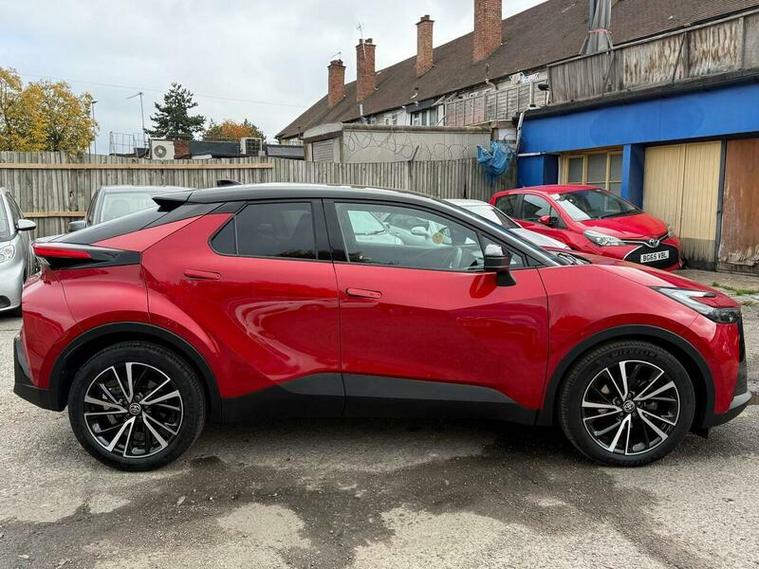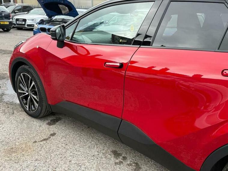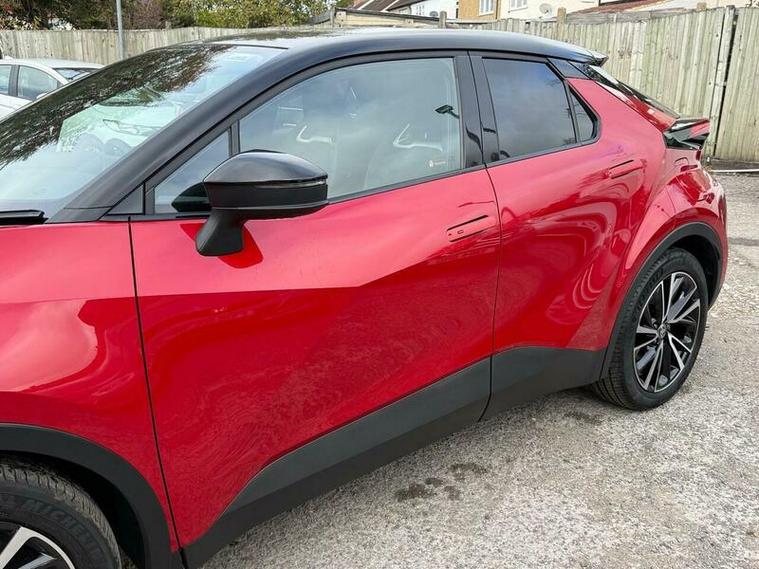 This 2024 Toyota C-HR VVT-h Excel presents an exceptional opportunity with remarkably low mileage for its age, having covered just 9000 miles. This stylish SUV is equipped with a responsive 1.8L petrol hybrid engine, meeting Euro 6 emission standards. The Excel trim level ensures a premium experience, enhanced by features such as Blind Spot Monitor with Blind Spot Assistance, a Remote Air Conditioning System, and seamless Wireless Smartphone Integration including Apple CarPlay. Comfort is further elevated with heated driver and front passenger seats, and the expansive Toyota Skyview Panoramic Roof adds an open and airy feel to every journey.