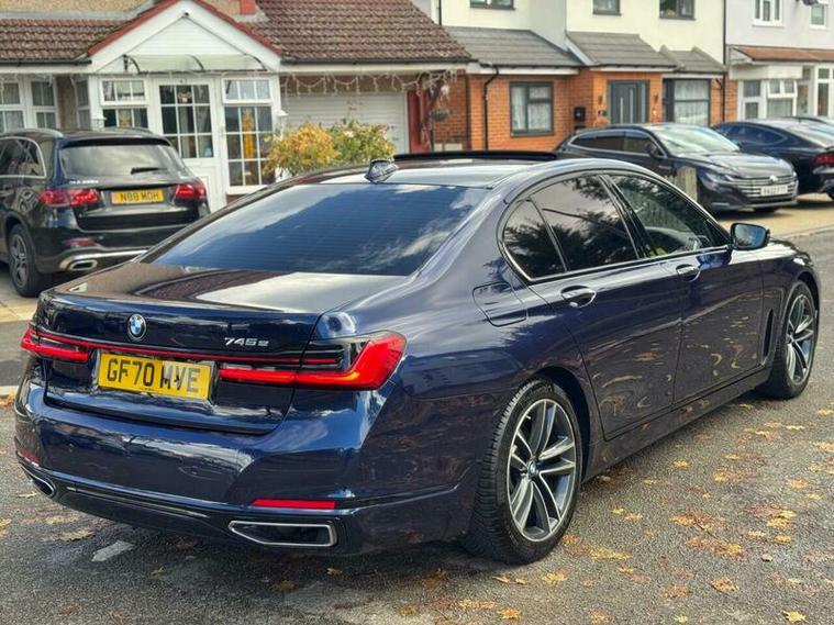 This 2020 BMW 745e offers a sophisticated blend of performance and efficiency, featuring a powerful 3.0L petrol plug in hybrid engine that meets Euro 6 emissions standards. This model is equipped with a Technology Package, which includes a rear view parking assistance camera, and a Visibility Pack with LED headlights for enhanced illumination. Comfort is further elevated by an electric glass sunroof and a Rear Seat Comfort Package, complete with a heated steering wheel. The vehicle is presented with stylish 19 inch light double spoke alloy wheels in a bi colour finish, style 630.