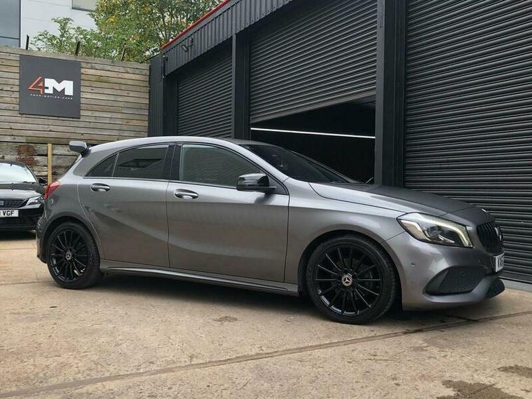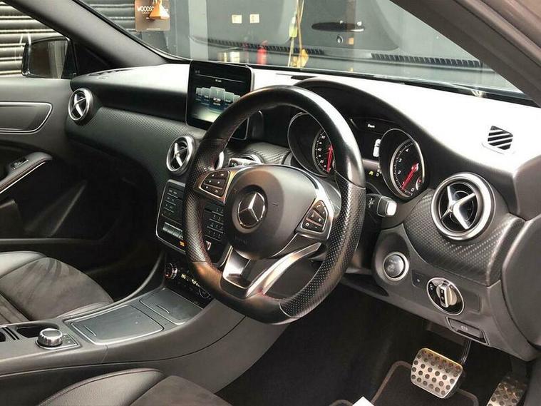 This 2017 Mercedes Benz A Class A180 AMG Line (Premium) boasts exceptionally low mileage for its age, having covered just 41, 000 miles. This Euro 6 compliant 1.6 litre petrol model comes in the desirable AMG Line trim, enhanced by the premium package. It features the striking Night Package and privacy glass for added style and seclusion. Driving convenience is further elevated with Headlamp Assist, automatically activating the headlights, and a 180 degree reversing camera with parking guidelines to aid manoeuvring. Inside, you'll find THERMOTRONIC luxury automatic climate control, offering a dual zone system with a clear display for personalised comfort.