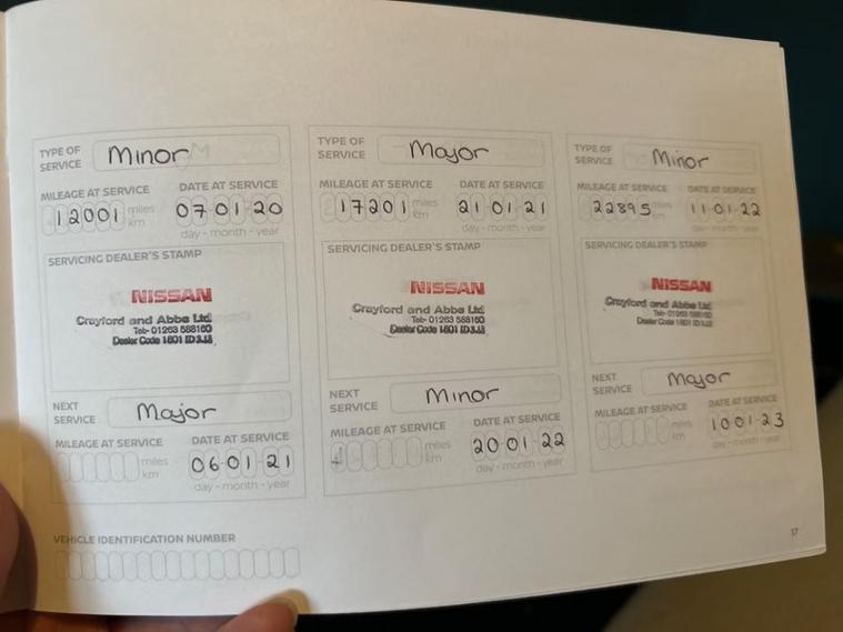 This car comes with 5 seats, White, 4 owners, 12V Socket - Front, 17in Alloy Wheels - Urban, 2 Speed Wiper with Variable Intermittent, 3 Adjustable Rear Head Restraints, 60-40 Split Rear Folding Seats, AUX Socket for MP3 Player, Airbag - Driver, Airbag - Front Passenger, Airbags - Curtain, Airbags - Side, Armrest - Coloured Stitching to Matching Centre Console, Automatic Climate Control with Pollen Filter, Automatic Lights and Wipers, Black Headliner, Body Coloured Handles, Body-Coloured Door Mirrors with LED Indicators, Boot Capacity with Flexi-Floor Board, Chrome Interior Door Handles, Colour Reversing Camera, Cruise Control with Speed Limiter, DAB and Internet Radio with 6 Speakers, Drive Computer with Temperature Gauge, ESP ABS EBD and Brake Assist, Electric Folding and Heated Door Mirrors, Engine Immobiliser, Front Armrest, Front Cupholders x2, Front Door Pockets with Drinks Bottle Holders, Front Fog Lights, Front Map Reading Lights, Front Seat Belt Height Adjustment, Front Seat Belts with Load Limiter and Pretensioners, Front and Rear Electric Windows, Gear Shift Indicator, Glovebox, Height Adjustable Driver Seat, ISOFIX Child Seat Anchoring Points, Intelligent Key with Start Push Button, LED Signature Daytime Running Lights, Leather Steering Wheel and Gear Knob, Nissan Dynamic Control System, NissanConnect, Passenger Airbag Cut-Off Switch, Power Assisted Steering - Speed Sensitive, Puncture Repair Kit, Rear Door Child Locks, Rear Privacy Glass, Rear Tonneau Cover Integrated into Tailgate, Rear Wiper with Intermittent, Safety Pack, Seats - Heated Front, Steering Wheel Mounted Audio Controls, TPMS - Tyre Pressure Monitoring System, Telephone - Bluetooth Integration, Tilt Adjustable Steering Wheel, Traction Control, USB Port,