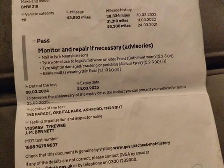 2017 BMW 2 Series Gran Tourer 1.5 218i Sport MPV 5dr Petrol Auto Euro 6 (s/s) (136 ps) Auto +Navigation +Rear Cam +Parking Sensors +Low Miles +Ulez