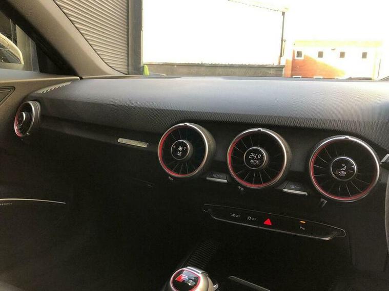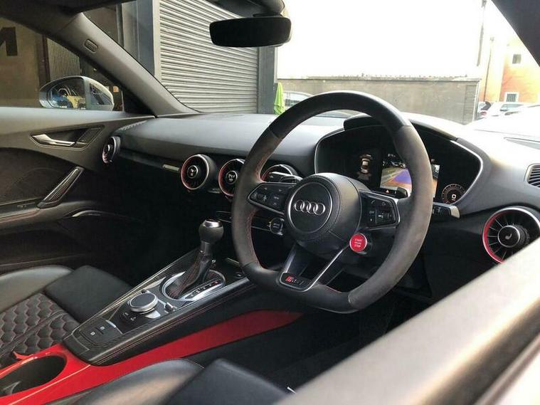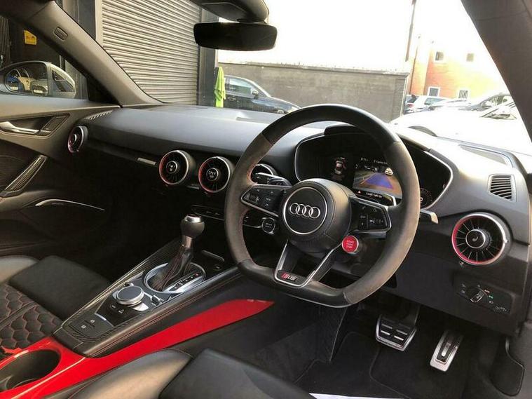 Experience exhilarating performance with this 2019 Audi TT RS TFSI Sport Edition, a striking example of German engineering. This four wheel drive model boasts a powerful 2.5 litre petrol engine, compliant with Euro 6 emissions standards, and is presented in the desirable Sport Edition trim. Among its notable features, you'll find the Comfort and Sound Package, which includes keyless entry and rear parking assistance with a camera, enhancing both convenience and safety. The car is also equipped with advanced Audi Matrix LED headlights, featuring full LED illumination, and the distinctive RS Styling Package in red. For an even more engaging driving experience, it includes Audi Magnetic Ride and eye catching OLED rear lights.