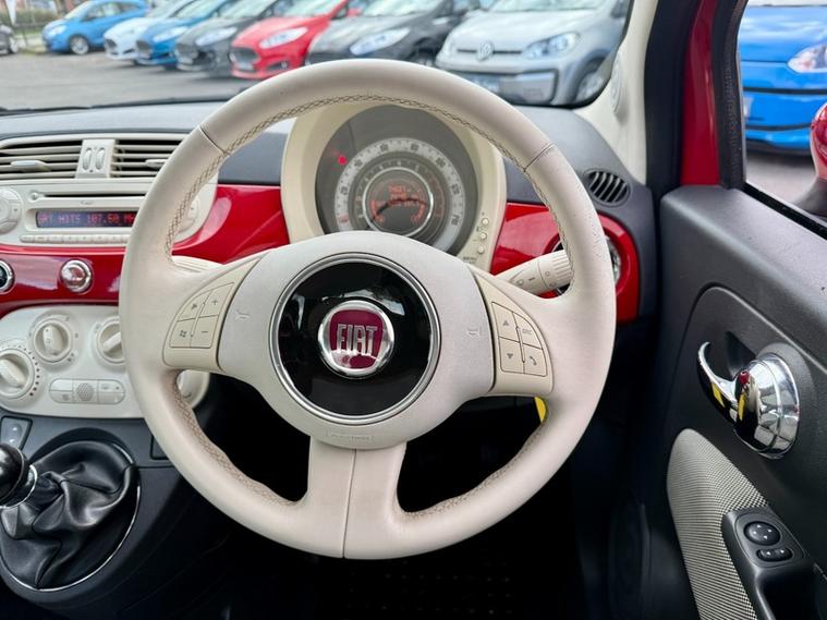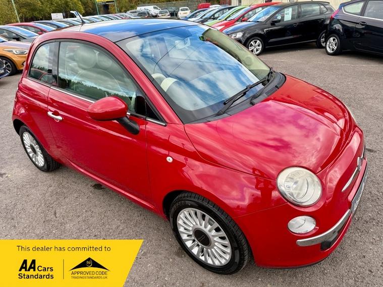 ABSOLUTE CARS have this 3 Door Fiat 500 1.2 Lounge Euro 5 (s/s) in Solid Red with Alloys. An Ideal First Car + Only £35 a Year Tax ! Call in for a test drive, finance arranged & part exchange considered., 3 months warranty, Next MOT due 18/10/2026, Last serviced on 14/10/2025 at 74, 559 miles, Part service history, Grey Cloth interior, 4 seats, Red, 4 owners, Upgrades - Front FogLights, Standard Features - 15in Alloy Wheels, ABS - Anti-Lock Braking System, Air Conditioning, Airbags - Driver, Airbags - Front Side, Airbags - Passenger, Black ambience, Blue&Me - Hands Free System with USB Port, Body colour door mirrors, Chrome Kit, Drivers Knee Airbag, EBD - Electronic Brakeforce Distribution, Electric Front Windows, Electrically Adjustable Heated Door Mirrors, Fixed Glass Roof with Sunblind, Fixed Glass Sunroof with sunblind, ISOFIX Child Seat Attachments, Ivory ambience, Lounge Interior Trim, Power Steering - Dualdrive Electric, Radio-CD and MP3 Player, Remote Central Locking, Space Saver Spare Wheel, Steering Wheel - Height Adjustment, Steering Wheel - Leather with Audio Controls, Window Airbags, AS WE ARE AN AA CARS DEALER THIS VEHICLE COMES WITH 12 MONTHS AA BREAKDOWN COVER.