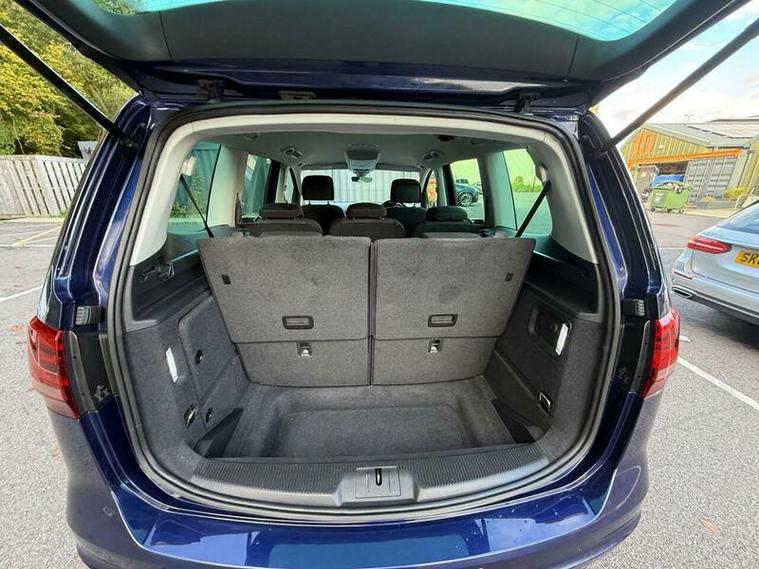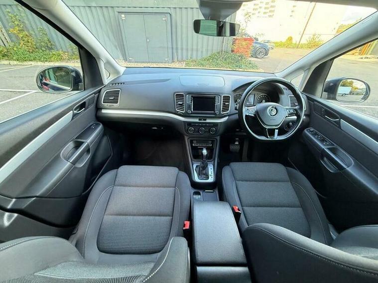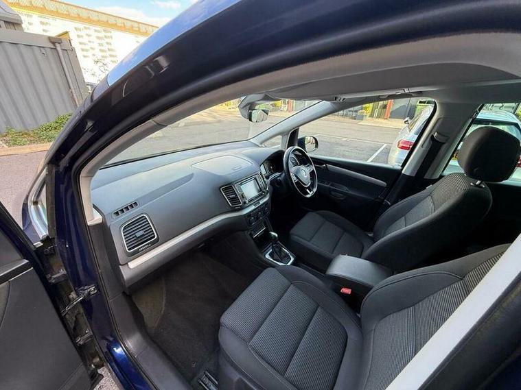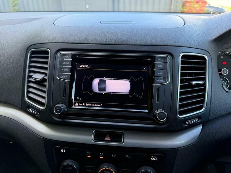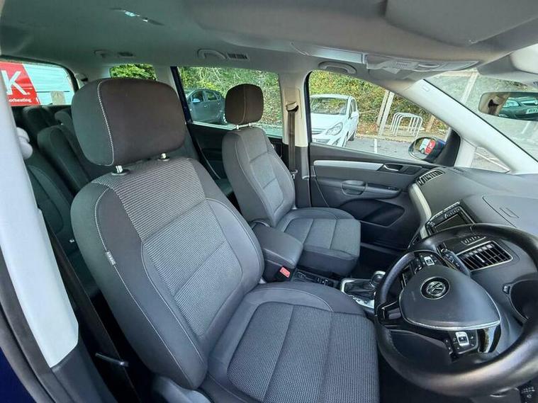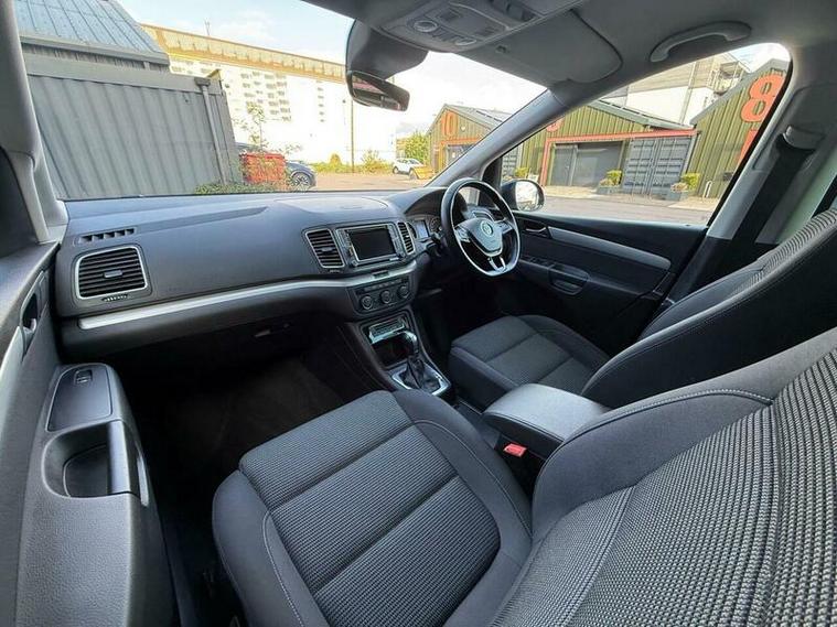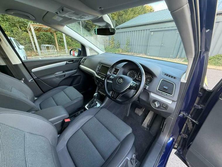 This 2020 Volkswagen Sharan TSI SE Nav offers the peace of mind that comes with having had only one owner from new. This versatile seven seater is powered by a 1.4 litre petrol engine and meets Euro 6 emissions standards. The SE Nav trim level ensures a well equipped driving experience, featuring a Blind Spot Monitor with Rear Traffic Alert and Lane Assist, Adaptive Cruise Control, and a Dusk Sensor for automatic headlights. For added convenience and safety, it also includes Side Scan, and front and rear parking sensors.