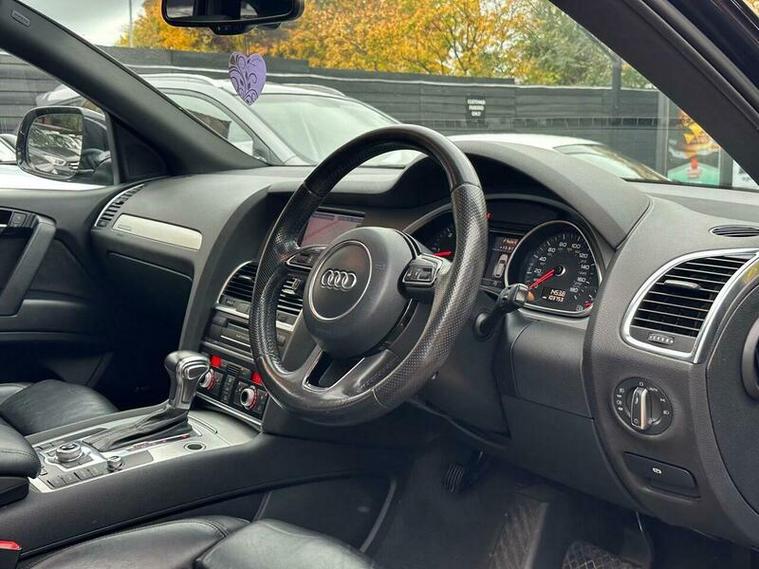 Basford motors ltd delighted to offer this stunning Audi Q7 3.0 TDI V6 S line Plus Tiptronic quattro Euro 5 (s/s) 5dr with huge spec, Boasting a great service history with the last service completed at 103, 765 miles on 16th October 2025 had (oil+oil filter+1 injector fuel+front brake pads & disks+rear brake pads and disks), this Audi Q7 TDI V6 S line Plus is a well maintained example. This impressive seven seat SUV features a powerful 3.0 litre diesel engine paired with Audi's renowned four wheel drive system, ensuring confident performance in all conditions. The S line Plus trim level adds a touch of sportiness and sophistication, while the vehicle's substantial 3200 kg towing weight makes it a capable companion for larger loads. Notable features include Bi-Xenon Plus headlights for excellent visibility, Audi Parking System Advanced with a rear view camera and front parking sensors to aid manoeuvring, and a high specification mobile telephone preparation with Audi Connect for seamless connectivity. Inside, you'll appreciate the dual zone electronic climate control for personalised comfort.