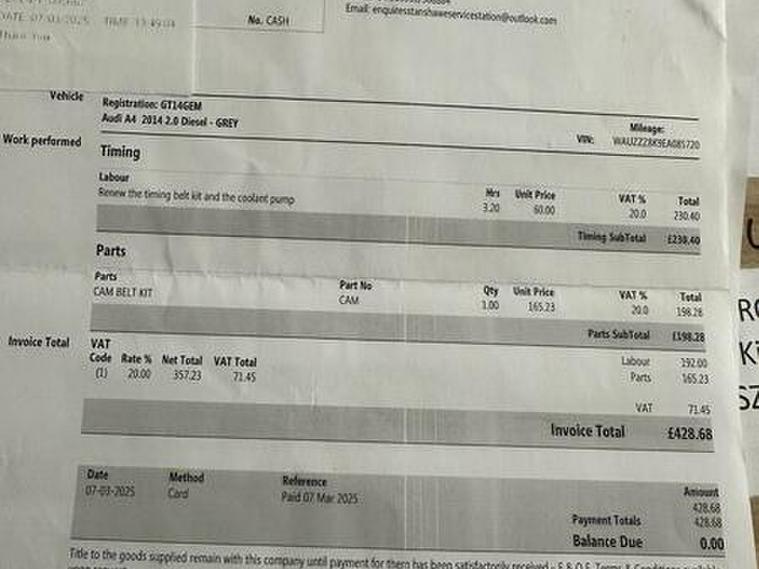 Here we have another beautiful Audi A4 this car is very well looked after and got good service history too, Its timing belt and water pump is replaced im march 2025, and last serviced at the present mileage, its got clean Mot till 14/10/2026, this car is clean and tidy inside and outside , no dents or scratches, clean wheels, ???? tires in very good condition. Interior is clean, no rips or marks, no damage to the interior whatsoever,