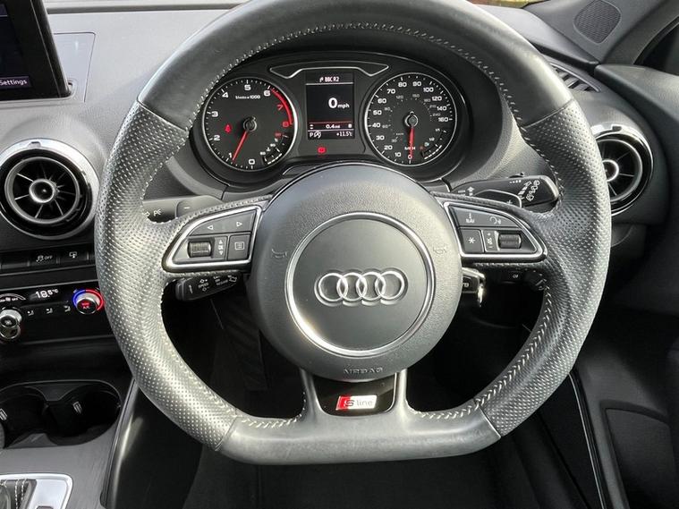 We are delighted to offer this superb low mileage 1 Owner from new Audi A3 S-Line Quattro Automatic finished in Misano Red Pearl. Having covered only 29300 miles it benefits from a Full Audi Service History (12 services up to 28963 miles on the 22/08/25). Euro 6, ULEZ Compliant. This vehicle is flawless and comes with an abundance of optional extras: Audi Parking System Plus with Park Assist, Bang and Olufsen Sound System, Cruise Control, Satellite Navigation System - SD Card Based, Heated Front Seats and Fine Nappa Leather Upholstery etc.... The 180 bhp version combines performance with economy. Overall this is an impressively refined car that is supremely agile and has superb acceleration and precise steering. Effortless to drive with it's smooth as silk Automatic S Tronic gearbox. Stunning S-Line styling and stand out curb appeal the A3 is a great all-rounder and should be top of your list when looking for a premium 5-Door hatchback. 1 Owner, Euro 6, 2 Keys. This vehicle comes with a Safety Check, 3 months Warranty and 12 months AA Breakdown Cover.