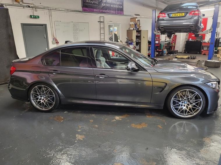The 2017 BMW M3 Competition M-DCT is a high-performance sports saloon that perfectly combines everyday practicality with thrilling performance and razor-sharp handling. At its heart is a 3.0-litre twin-turbocharged straight-six petrol engine producing 444 bhp and 550 Nm of torque. Paired with BMW?s advanced 7-speed M DCT dual-clutch automatic gearbox, it delivers blisteringly quick shifts and relentless acceleration ? launching from 0?62 mph in just 4.0 seconds. The power delivery is smooth yet explosive, and with an electronically limited top speed of 155 mph, it?s a true driver?s car engineered for both road and track.The Competition Package elevates the standard M3 to another level, adding more power, uprated adaptive M suspension, a revised Active M differential, and a sportier exhaust system that enhances the engine?s distinctive soundtrack. Visually, the M3 Competition makes a bold statement with its aerodynamic body kit, flared wheel arches, sculpted bonnet, gloss black exterior detailing, quad exhaust tips and 20-inch lightweight forged M alloy wheels. LED headlights and M-specific badging complete the aggressive and purposeful look.Inside, the M3 Competition M-DCT balances performance focus with luxury. The cabin features M Sport seats with enhanced side bolstering, full Merino leather upholstery, carbon fibre interior trim, a leather-trimmed M steering wheel with paddles, and ambient interior lighting. Standard equipment includes dual-zone climate control, keyless start, a Harman Kardon premium audio system, front and rear parking sensors, cruise control, and BMW?s iDrive infotainment system with satellite navigation, DAB radio, Bluetooth, USB connectivity, and smartphone integration.On the road, the M3 M-DCT delivers exceptional precision and agility. The dual-clutch transmission offers rapid gear shifts and selectable driving modes, allowing the car to adapt from a comfortable cruiser to an all-out performance machine at the touch of a button. The adaptive M suspension and lightweight chassis ensure excellent cornering ability and ride control, while the Active M differential provides superb traction and balance.Safety and technology are top-notch, with multiple airbags, ABS, traction control, dynamic stability control, lane departure warning, adaptive headlights, forward collision alert and ISOFIX child seat mounts.Overall, the 2017 BMW M3 Competition M-DCT is a sensational performance saloon that delivers 444 bhp of excitement with the refinement and practicality of a premium four-door. With its rapid M-DCT gearbox, aggressive styling and track-bred engineering, it remains one of the most desirable and exhilarating performance cars in its class. The BMW M3 Competition will come with Book pack, Full service history, 12 Months MOT, 3 months warranty and 12 months breakdown cover. The BMW M3 Competition has an exceptional spec that includes Cometition package that includes Sportier Exhaust, M Differential, Uprated adaptive M suspension, 20' M sport alloy wheels, Satellite Navigation, Merino Leather Upholstry, Carbon trim, Harmon Kardon Surround sound system, Electric heated seats, ABS brakes, Air conditioning, CD Player, Central locking, Climate control, Electric windows, Poawer assisted steering, Adjustable steering, Automatic rearview mirror dimming, Bluetooth, Body coloured bumpers, Brake assist, Cruise control, Cup holders, Daytime running lights, Electric folding mirrors, Electric heated seats, Electric mirrors, ESP, Front and side impact airbags, Front fog lights, Heated door mirrors, Hill start assist, ISOFix anchor points, Launch control, LED lights, Parking sensors, Rain sensor, Sports seats, sports suspension, Sports tuning, Start stop system, Steering wheel controls, Traction control, and much more. For further information please see the spec list.