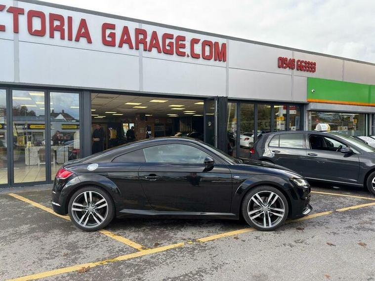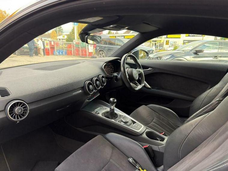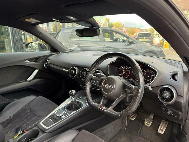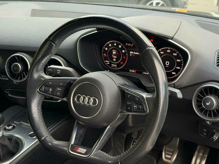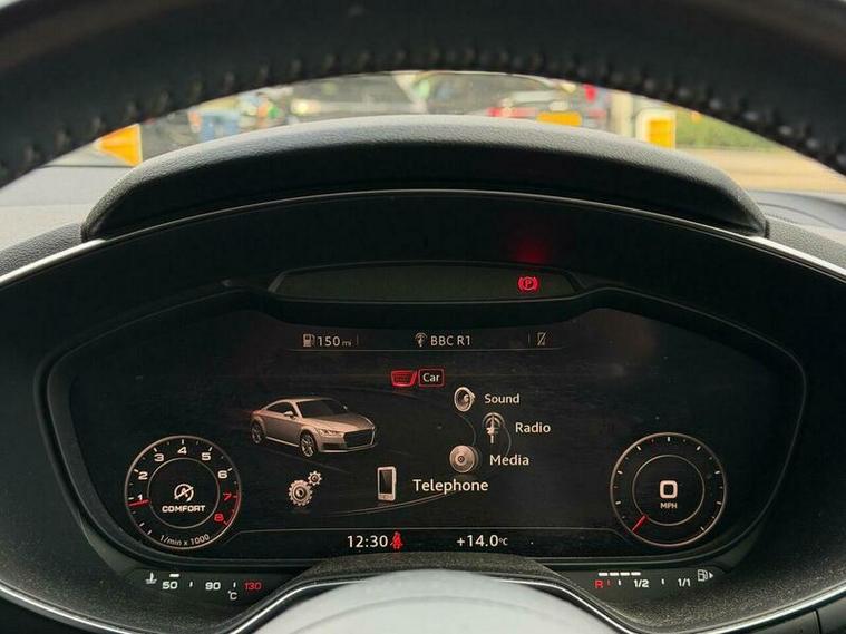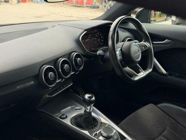 This Audi TT TFSI S line from 2016 presents a superb ownership history, having been cared for by only two owners. This particular model boasts a 2.0 litre petrol engine and meets the Euro 6 emission standards. Inside, you'll find a comfortable cabin equipped with air conditioning and mobile telephone preparation featuring a Bluetooth interface for seamless connectivity. The exterior is enhanced by all weather LED headlights, which also benefit from a light sensor for automatic activation, ensuring visibility in various conditions.