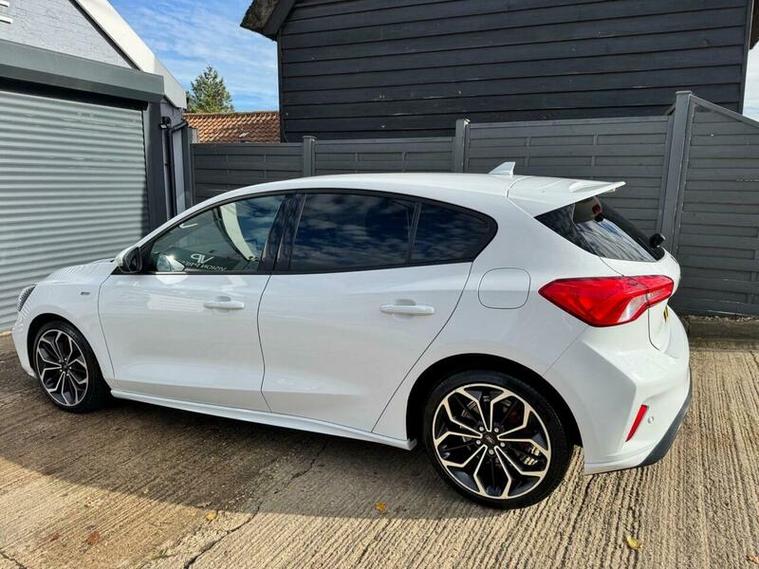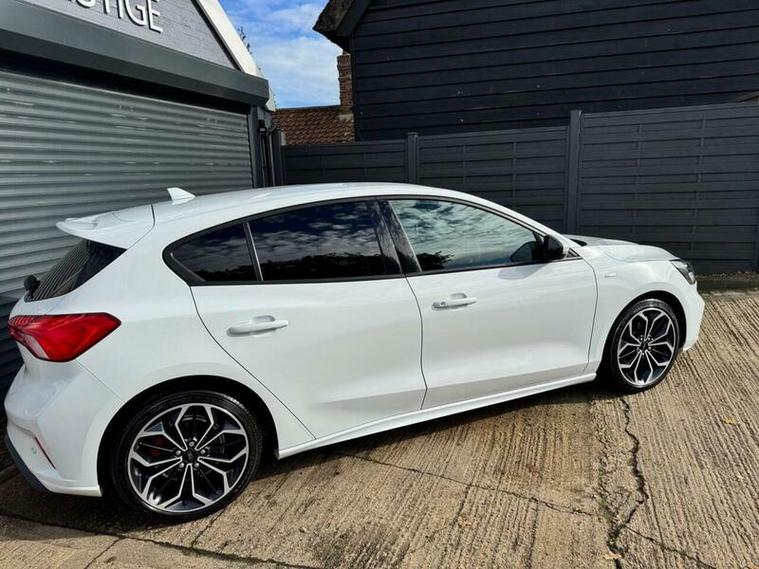 ***JUST ARRIVED***LOCAL CAR***FATHER AND SON OWNED***GREAT LOOKING CAR WITH SPEC TO MATCH***LARGE SCREEN SAT NAV***FRONT AND REAR PARK***HEATED SEATS***AUTOMATIC GEARBOX***This 2020 Ford Focus ST-Line X presents an exceptional opportunity with its remarkably low mileage of just 24, 000 miles. Powered by an efficient 1.0 litre turbo petrol engine and meeting Euro 6 emissions standards, this model offers a refined driving experience. The ST-Line X trim level ensures a host of desirable features, including paddle shift for manual gear selection, a sophisticated E-shifter rotary bezel gearshift knob, and a premium centre console complete with a short sliding armrest, open cup holder, and convenient 12V power points front and rear.
