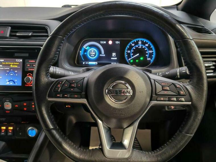 The N-Connecta trim level is well equipped with notable features designed for comfort and convenience. These include automatic headlights with a dusk sensor, intelligent adaptive cruise control for effortless journeys, and the Nissan Connect 2 Kai2 navigation system with DAB radio, Apple CarPlay, and Android Auto for seamless smartphone integration. Parking is made simple with the AVM(Around View Monitor) system, which includes a 360 degree camera and moving object detection. Keyless entry and start are also standard, alongside a generous boot space perfect for everyday needs. These features collectively enhance the driving experience, making this Nissan Leaf a compelling choice.