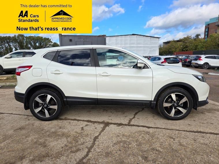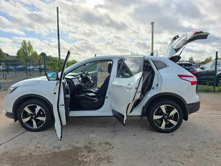 This car comes with 5 seats, White, 18in Alloy Wheels - Diamond Cut, 6 Speakers, 60-40 Split Rear Folding Seats, ABS - Anti Lock Brakes, AUX-In Socket, Airbag - Driver, Airbag - Passenger, Airbags - Curtain, Airbags - Side, Alarm, Armrest - Rear, Around View Monitor - 360 Bird-View, Auto Dimming Rear View Mirror, Auto Rain Sensing Wipers, Black Honeycomb Front Grille, Body Coloured Handles, Brake Assist, Bumpers - Body Coloured, Chrome Glass Surround, Climate Control - Dual Zone, Colour Side Camera, Cruise Control with Speed Limiter, DAB Radio, Door Mirrors - Body Coloured, Door Mirrors - Power Fold and Heated, Driver Seat Height Adjustment, EBD - Electronic Brakeforce Distribution, ESP - Electronic Stability Programme, Electric Speed-Sensitive Power Steering, Front Armrest, Front Collision Avoidance, Front Fog Lights, Front and Rear Electric Windows, Head Restraints - Active Front, Head Restraints - Rear, Headlights - Auto, Headlights - Auto High-Low Beam, Hill Start Assist, ISOFIX Childseat Anchorage Points - Middle Row Outer Seats, Immobiliser, Intelligent Key, Interior Ambient Lighting, LED Daytime Running Lights, Lane Departure Warning, Leather Steering Wheel, Luggage Board System, Lumbar Support, Parking Sensor - Front, Pollen Filter, Puncture Repair Kit, Push Start-Stop Button, Radio-CD, Rear Cupholder, Rear Door Child Locks, Rear Parking Sensor, Rear Privacy Glass, Satellite Navigation - Nissan Connect, Seats - Passengers Height Adjustment, Smart Vision Pack, Speed-Sensitive Autolock Function, Steering Wheel Mounted Audio Controls, TPMS - Tyre Pressure Monitoring System, Telephone - Bluetooth Integration, Tilt and Telescopic Adjustable Steering Wheel, Touch Screen 7in, Traction Control, Traffic Sign Recognition, Trip Computer, USB Port, e-PKB - Electric Parking Brake,