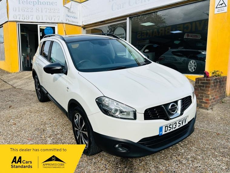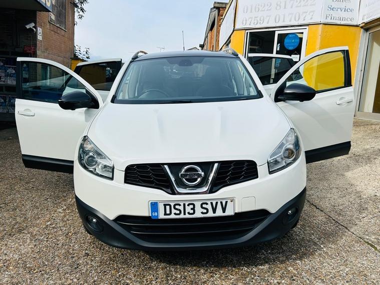 This 2013 Nissan Qashqai 360 offers a comprehensive and practical driving experience. Powered by a 1.6 litre petrol engine, this model benefits from an automatic lighting system that includes automatic headlights, ensuring visibility is always optimal. Parking is made simpler with rear parking sensors and the impressive Around View Monitor, which provides a 360 degree bird's eye view of your surroundings. Inside, you'll find dual zone climate control for personalised comfort and a panoramic glass roof that includes an opening sunroof, allowing you to enjoy the open air., , The Qashqai 360 stands out with its excellent fuel economy, achieving an impressive 46 miles per gallon, and its low CO2 emissions, making it an economical choice. Furthermore, its low insurance group rating indicates that running costs are kept to a minimum, offering you greater value compared to many other vehicles in its class., 1 month warranty, Next MOT due 17/10/2026, Last serviced on 17/10/2025 at 110, 000 miles, Part service history, Excellent bodywork, Interior - Excellent Condition, Tyre condition Excellent, 5 seats, White, 12V Socket - Front, 18in Alloy Wheels - Onyx, 360 External Badge, ABS - Anti Lock Brakes, AUX-In Socket, Active Front Head Restraints with Height Adjustment, Active Front Headrests with Height Adjustment, Airbag - Driver, Airbag - Front Passenger, Airbags - Curtain, Airbags - Side, Alarm - Ultrasonic, Aluminium Pedals, Ambient Footwell Lighting, Armrest - Leather, Armrest - Rear, Around View Monitor - 360 Bird-View, Auto Rain Sensing Wipers, Automatic Lighting System, Bluetooth Telephone Integration, Brake Assist, Bumpers - Body Coloured, CD Radio with 6 Speakers, Chrome-Trimmed LCD Combimeter, Cruise Control with Speed Limiter, Door Mirrors - Electric Adjustment and Heated, Door Mirrors - Gloss Black, Drive Computer, Driver Seat Height Adjustment, Dual Zone Climate Control, EBD - Electronic Brakeforce Distribution, ESP - Electronic Stability Programme, Electric Folding Door Mirrors, Electric Speed-Sensitive Power Steering, Electric Windows - Front and Rear, Engine Immobiliser, Front Armrest, Front Cupholders x2, Front Fog Lights, Front Map Reading Lights, Gloss Black Gear Shift Surround, Gloss Black Interior Door Handle, Head Restraints - 3 Rear, ISOFIX Child Seat Anchoring Points, Leather Gear Knob, Leather Steering Wheel, NissanConnect, Panoramic Glass Roof, Parking Aid - Rear, Pollen Filter, Rear Cupholder, Rear Door Child Locks, Rear Parking Sensors, Rear Privacy Glass, Rear Reading Lights, Remote Central Locking, Roof Rails - Gloss Black, Seats - 60-40 Split Foldable Rear Bench, Seats - Drivers Lumbar Support, Speed-sensitive autolock function, Steering Wheel Mounted Audio Controls, Tilt and Telescopic Adjustable Steering Wheel, Traction Control, Trip Computer, USB - iPod Connectivity, Open 7 days a week, All Major Cards Accepted, Visit our website for more stocks, Post Code: ME18 5DD, £3, 499